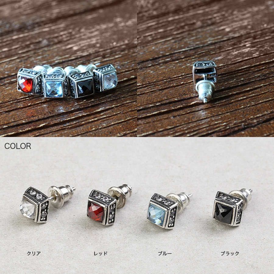 シルバーピアスジルコニアクリアブラックブルーレッドスタッドピアスシルバーアクセサ…