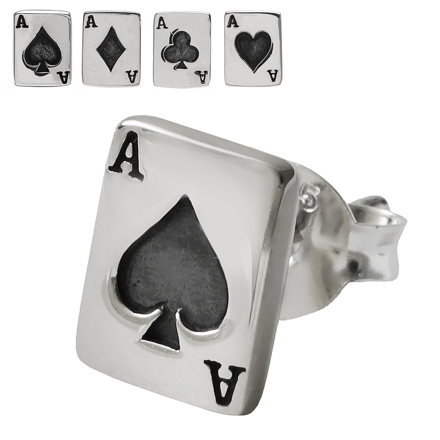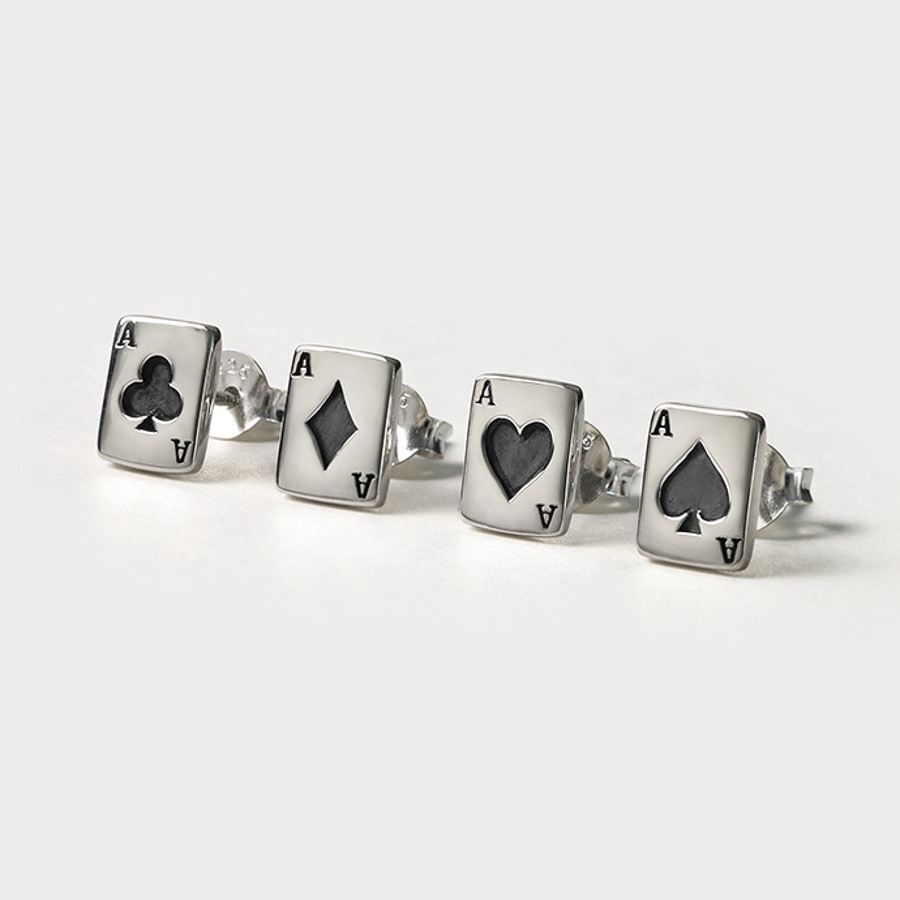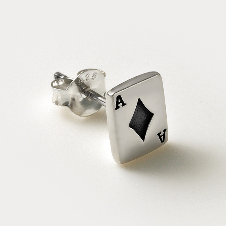 トランプのA(エース)のカードがモチーフになったピアスです。シンプルながらインパクトのあるモチーフに加え、精巧な造りなので注目度◎!スペード、ダイヤ、ハート、クラブの4種類から選べるのが嬉しい、プレゼントにも喜ばれそうなアイテムです。