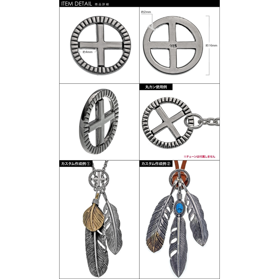 ネイティブ系アクセには欠かせない"メディスンホイール"をモチーフにしたペンダントです。円周部分に彫り模様を施したシンプルなデザインが、メディスンホイールの独特なシルエットを際立たせます。フェザー系ペンダントなどのネックレスを組むパーツとして胸元に十分な存在感を与えてくれます。