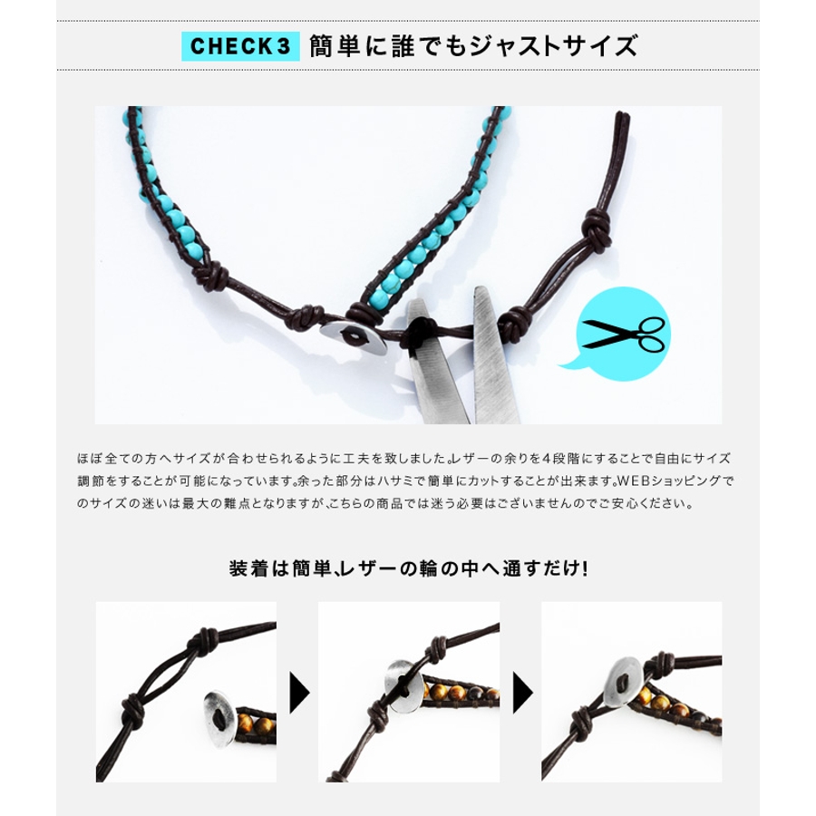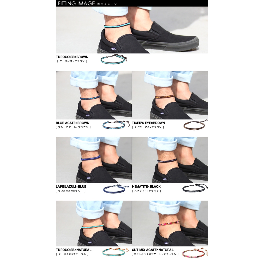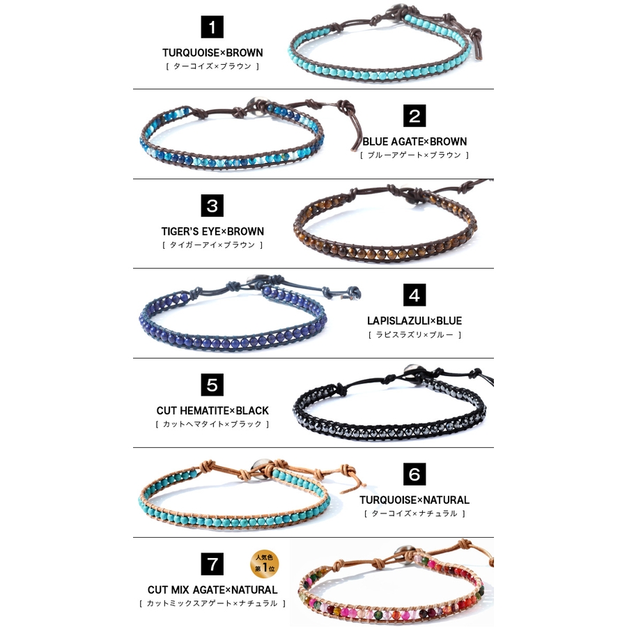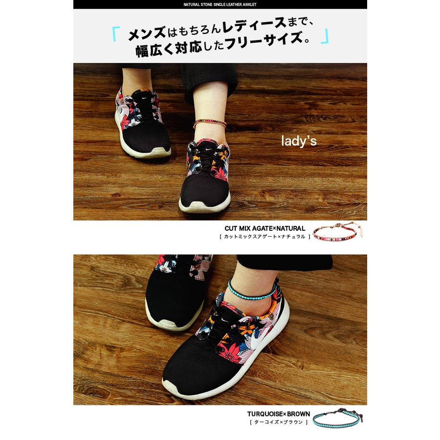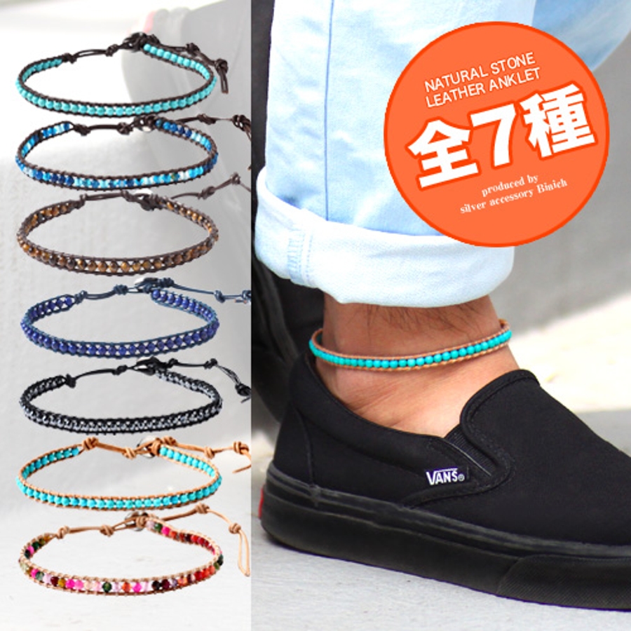 天然石シングルビーズレザーアンクレットパワーストーンBinichビニッチ