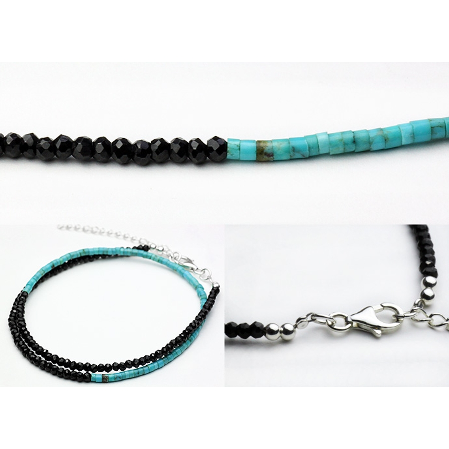 ターコイズアンドブラックスピネルネックレスシルバー925アクセサリーブラックスピ…