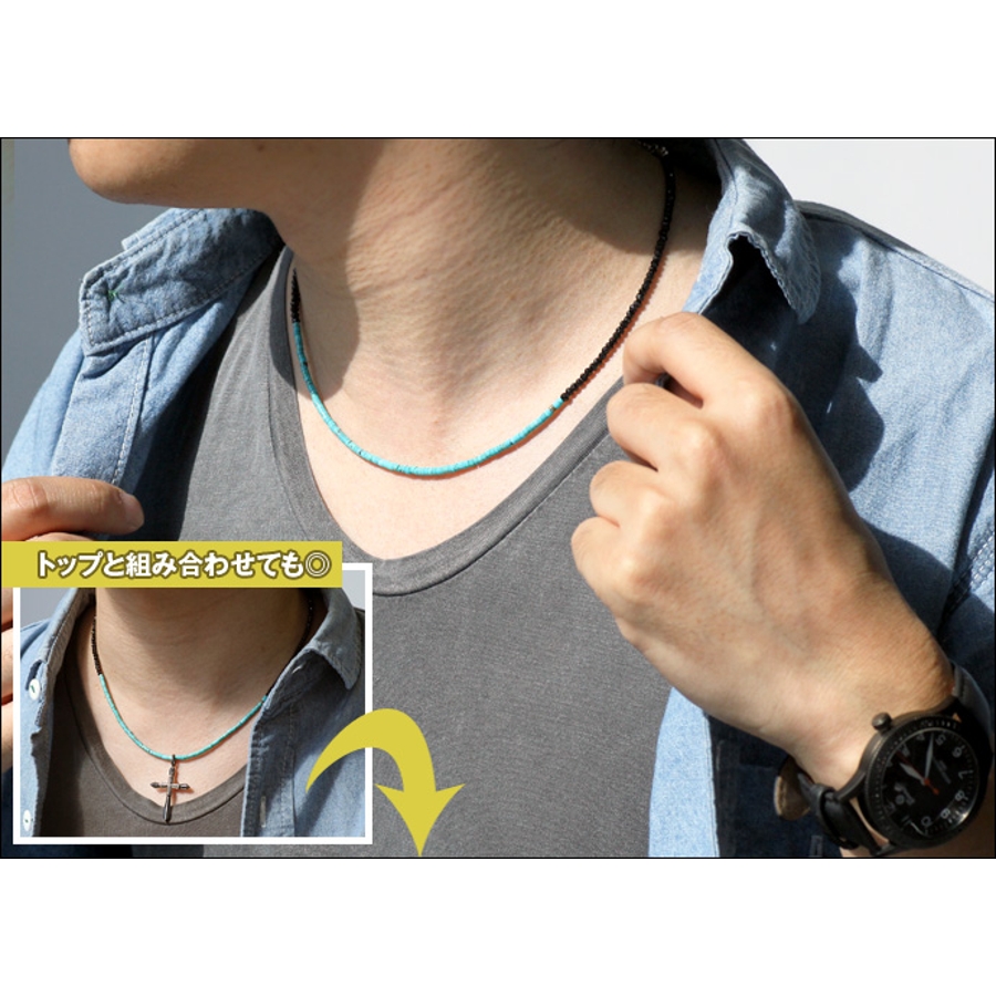 ブラックダイヤに匹敵する輝きを持つブラックスピネルと圧倒的人気を誇るターコイズを組み合わせたネックレス。ブラックスピネルがターコイズの色をより一層引き立てる一品。