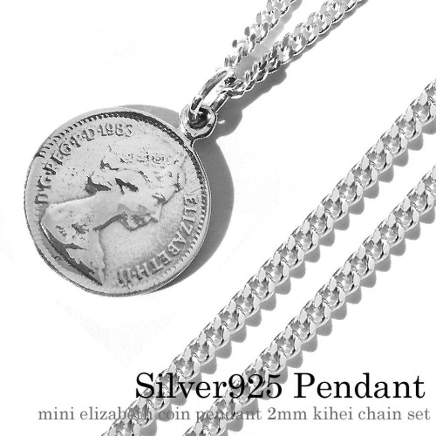 ミニエリザベスコインペンダント2mm喜平チェーンセットシルバーBinichビニッ…