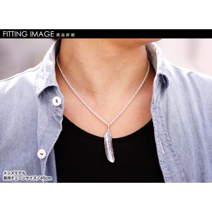 ネイティブフェザーペンダントK3mmアズキチェーンセットメンズネックレスシルバー…
