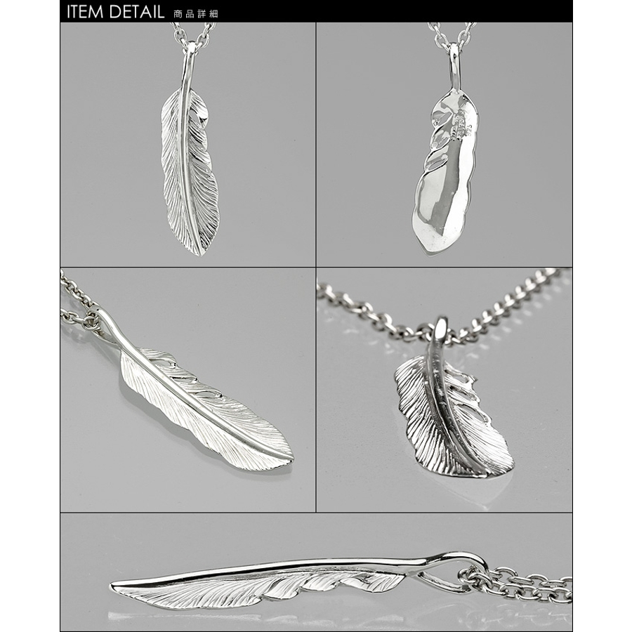 羽の隙間をデザインすることで、フェザーが風になびく様を表現したシルバーペンダントです。燻し加工がされていないシルバーに一本一本彫り込まれた羽毛が自然な陰影を作り、より軽やかで爽やかな印象を与えてくれます。フェザーモチーフには「飛躍」という意味が込められていて、何かに挑戦する時に着けると追い風が吹いてきそうな気持ちにさせてくれるアイテムです。