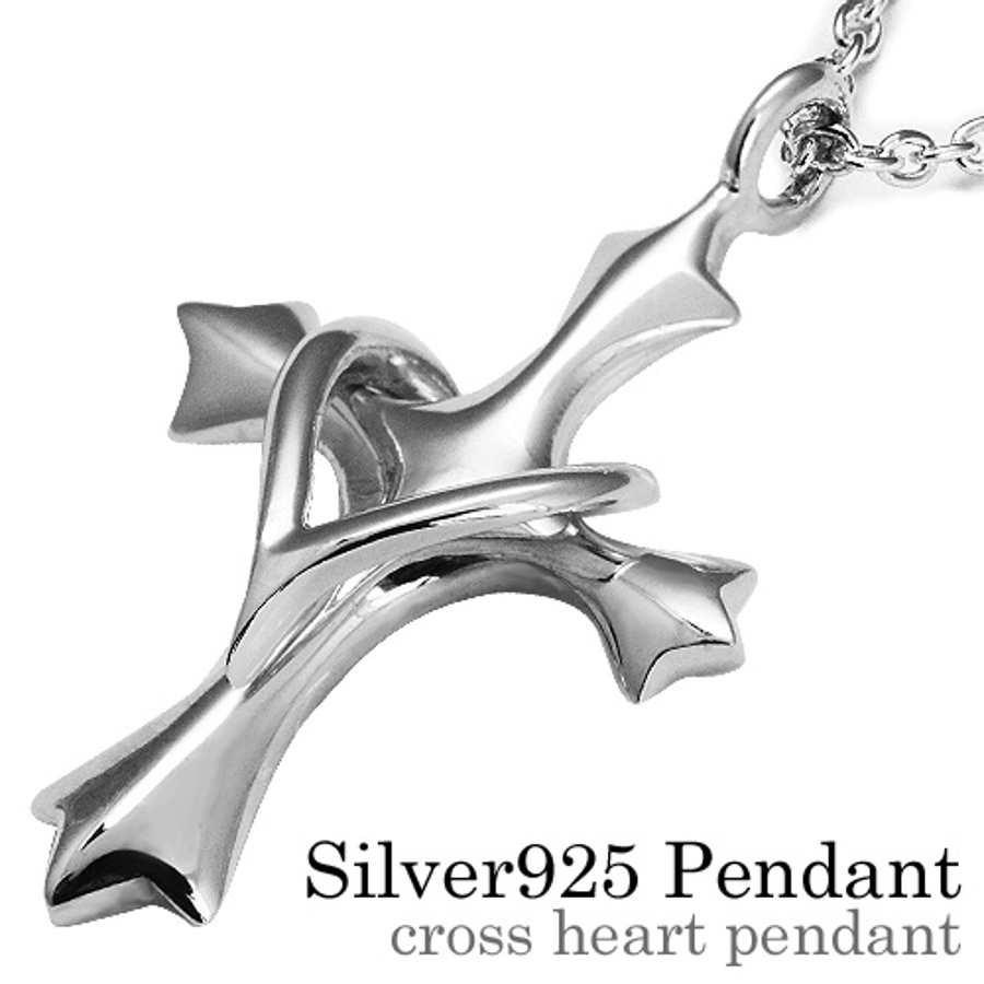 クロスハートペンダントシルバー2mmアズキチェーンセットメンズネックレスシルバー…