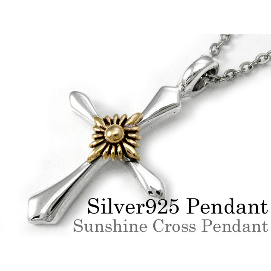サンシャインクロスペンダント2mmアズキチェーンセットメンズネックレスシルバー9…
