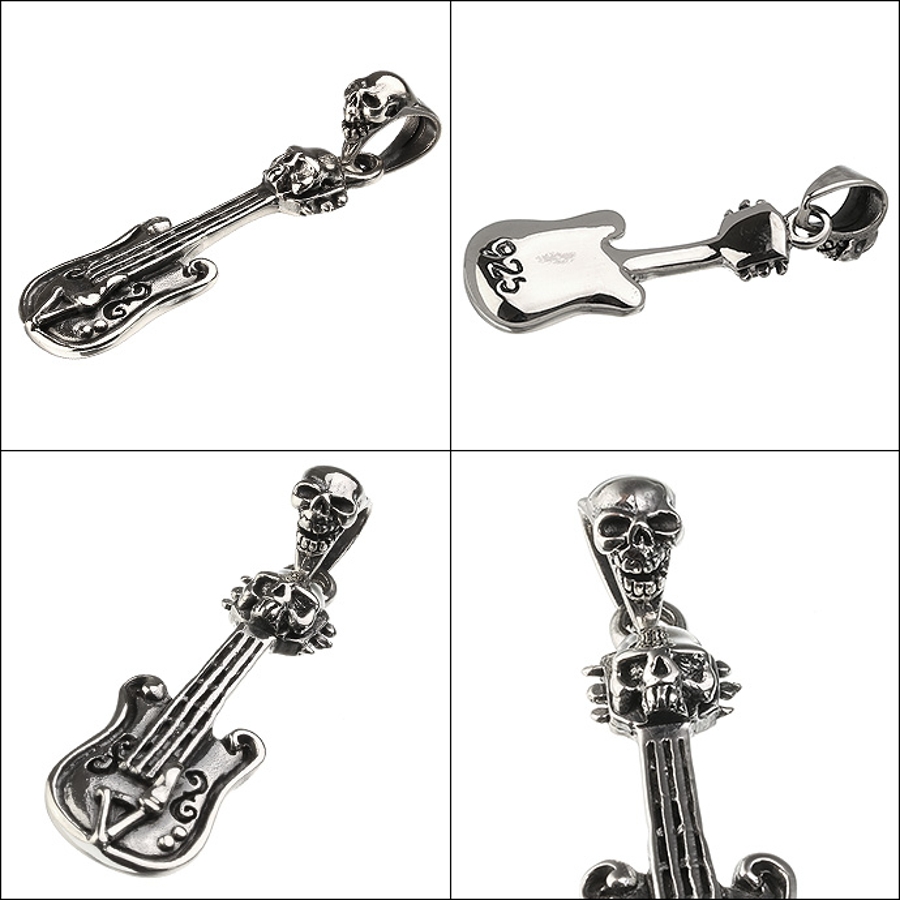 スカルギターペンダント3mmアズキチェーンセットメンズネックレスシルバー925ア…