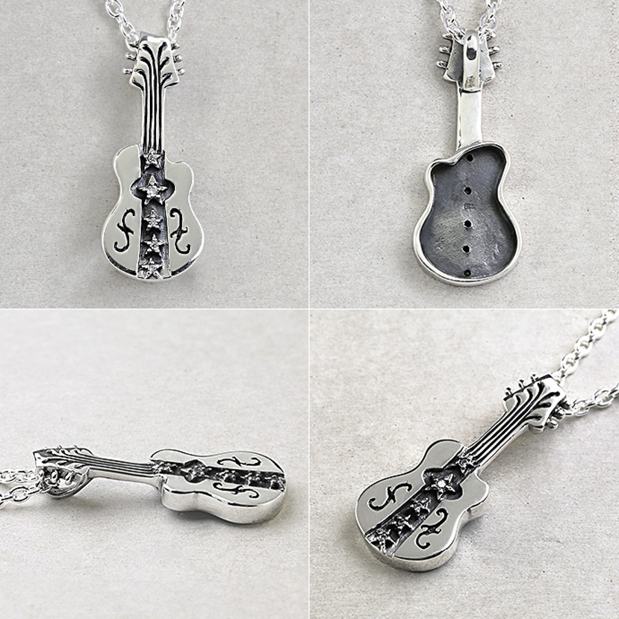 スターギターペンダント3mmアズキチェーンセットメンズネックレスシルバー925ア…