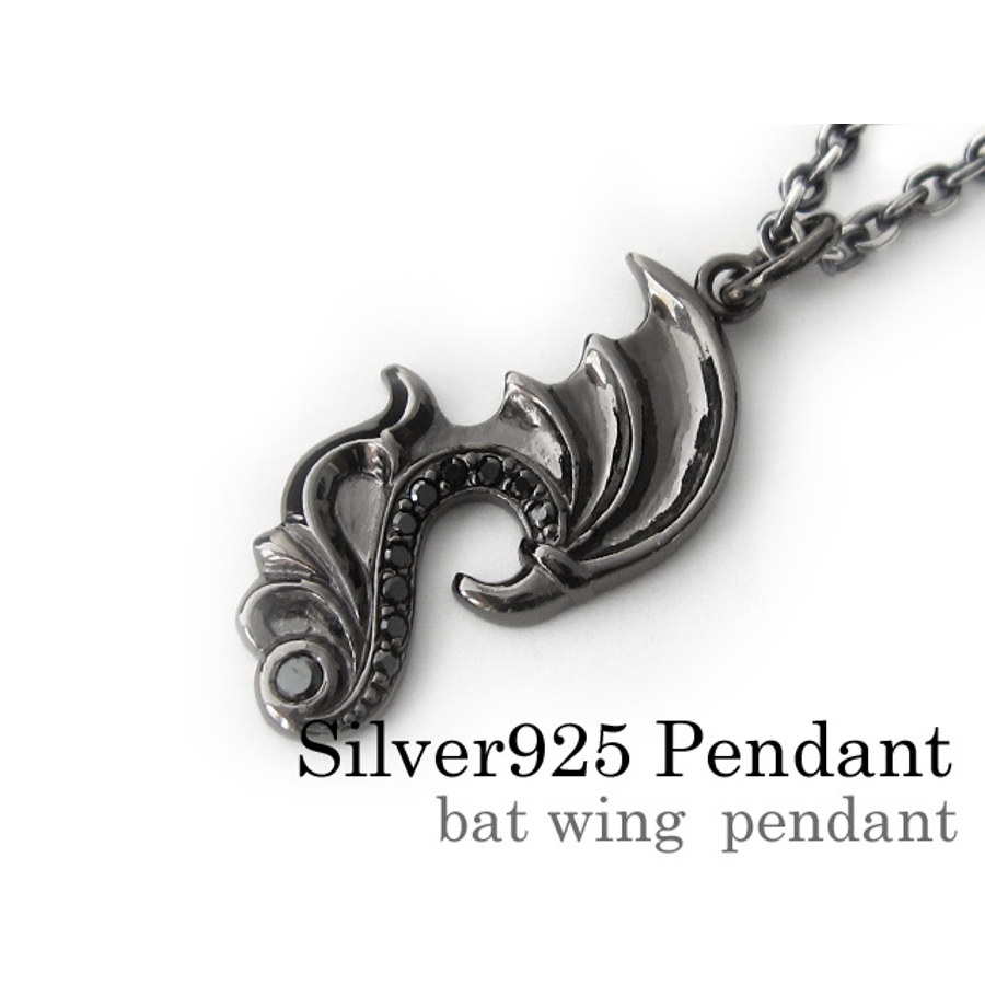 バットウイングペンダント3mmいぶしアズキチェーンセットメンズネックレスシルバー…