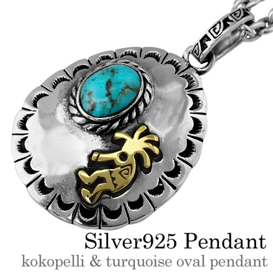 ココペリ&ターコイズオーバルペンダントトップのみメンズネックレスシルバー925ア…