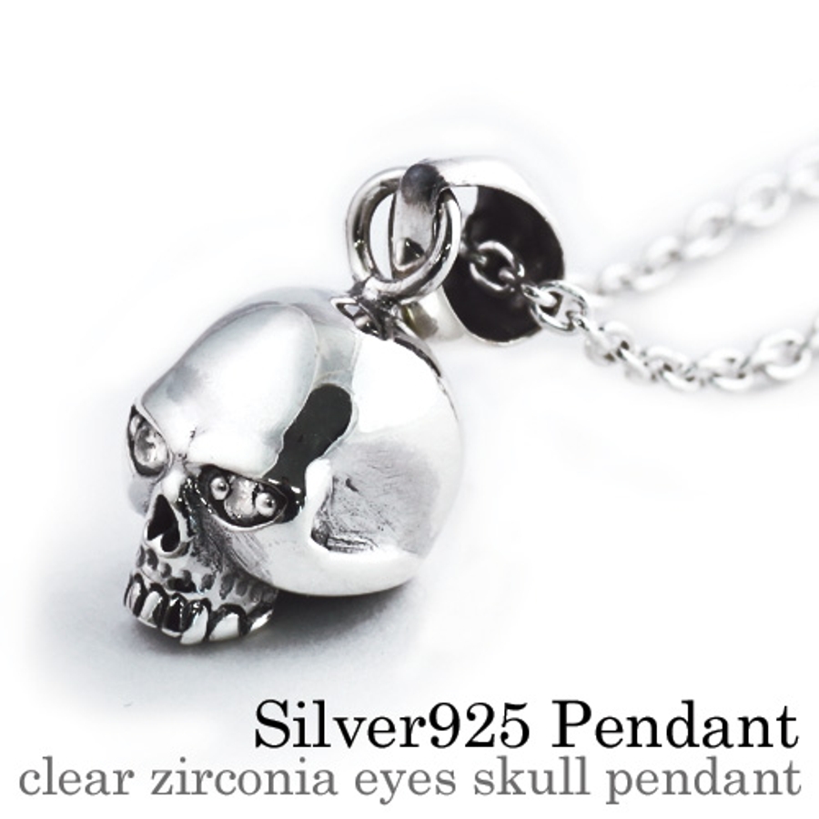 スカルの両目にクリアジルコニアを配置。スカルモチーフですが小ぶりでシンプルなデザインなので、男性はもちろん女性の方にもお楽しみいただけるペンダントに仕上がっています。
