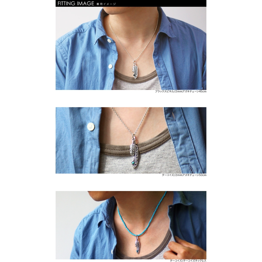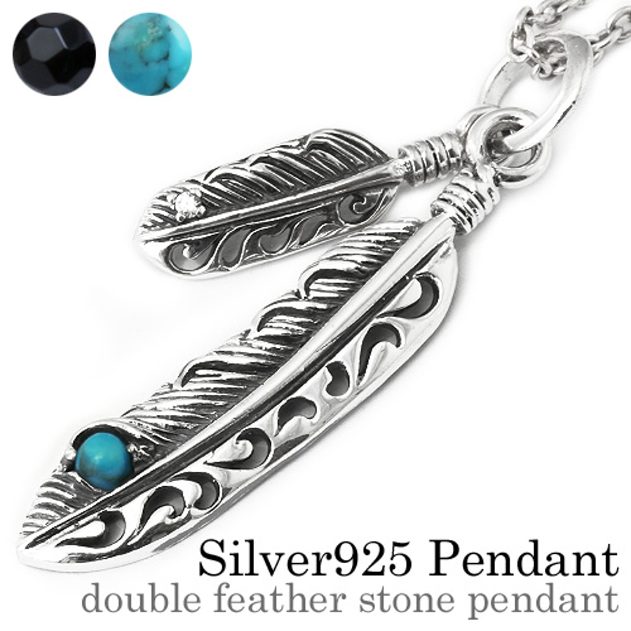 ダブルフェザーストーンペンダントトップのみメンズネックレスシルバー925アクセサ…