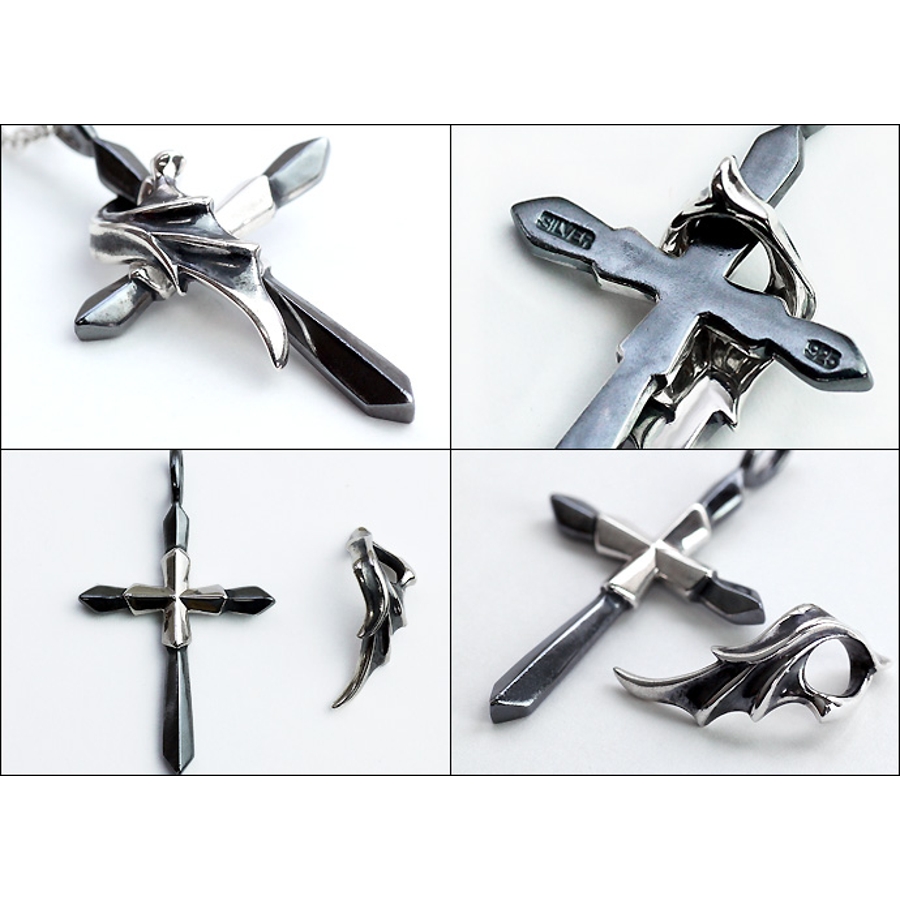 スタイリッシュでエッジのきいたクロスにウィングを組み合わせた最高のデザインペンダントが実現。その日のスタイルによってウィングを脱着できるので、万能ペンダントといっても良いでしょう。