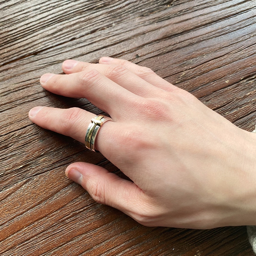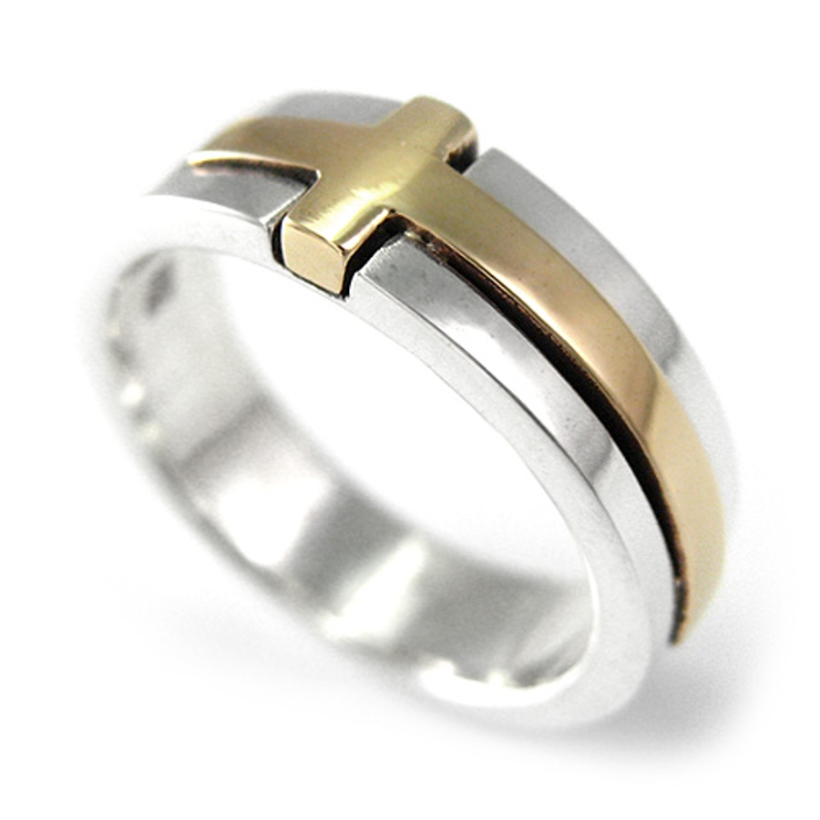 リング半周にゴールドのクロスがはめ込まれている。