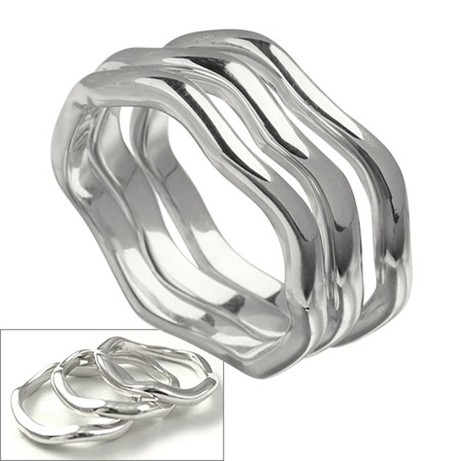 スリーリームスリング3連3セットウェーブ波シルバーリング指輪Binichビニッチ…