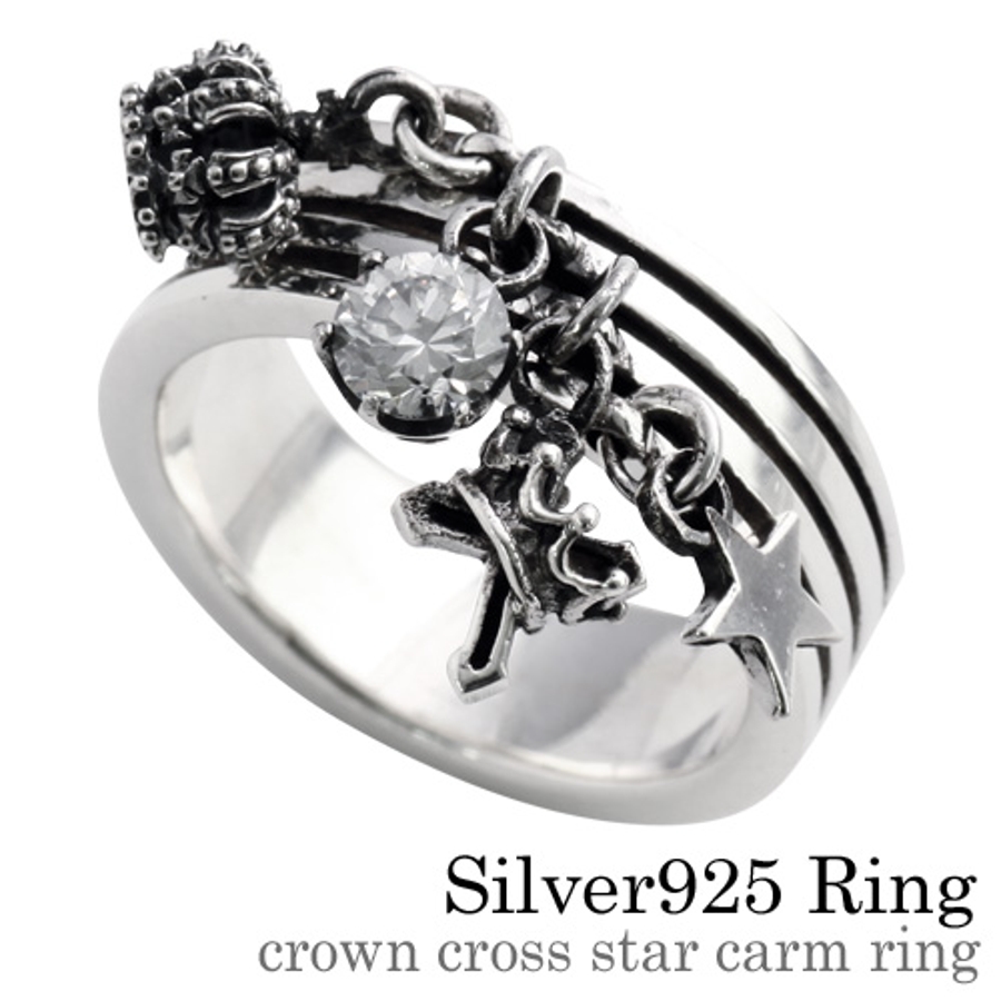 クラウンクロススターチャームリングシルバー925アクセサリー指輪Binichビニ…