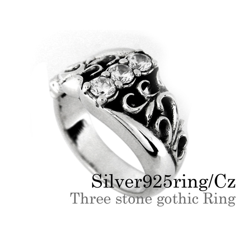 ゴシック3ジルコニアリングシルバー925アクセサリー指輪Binichビニッチ