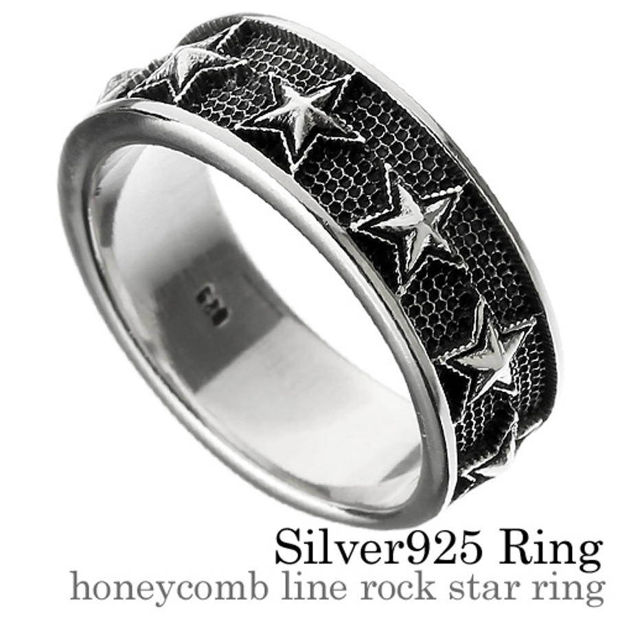 ハニカムラインロックスターリングシルバー指輪Binichビニッチ