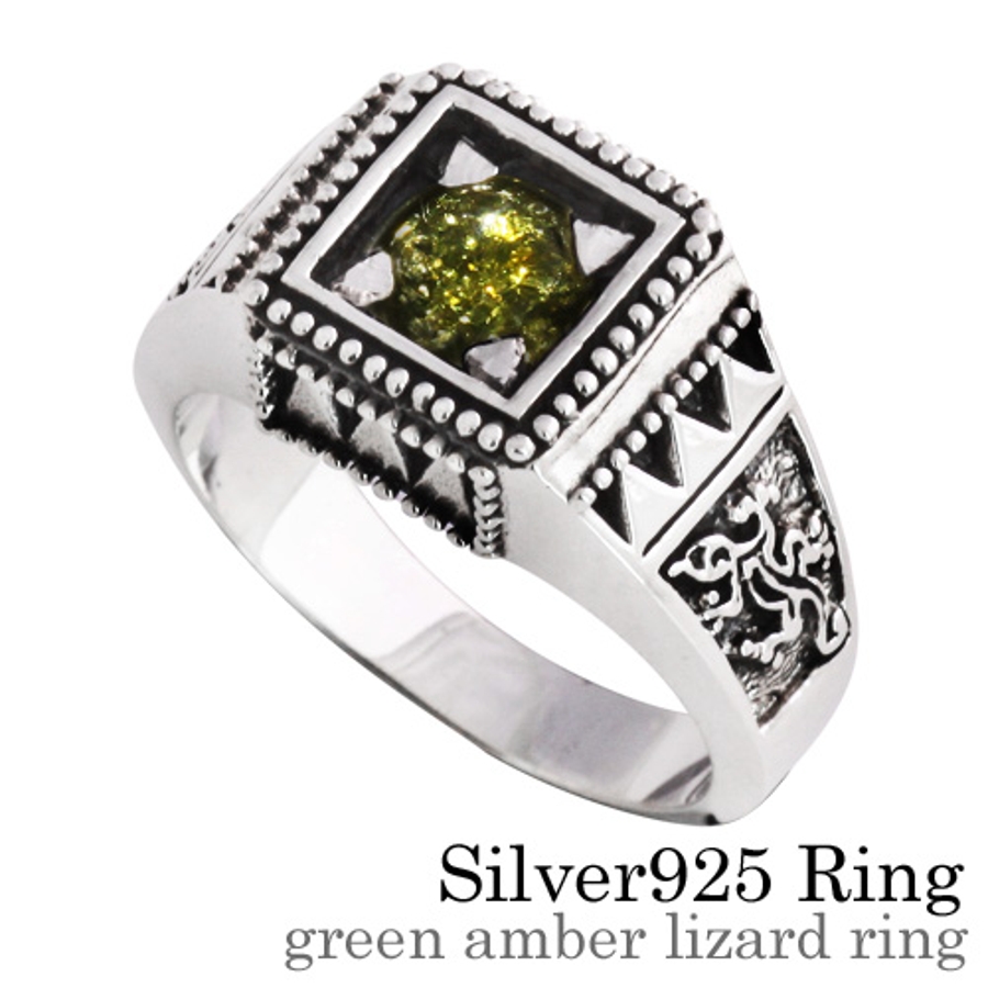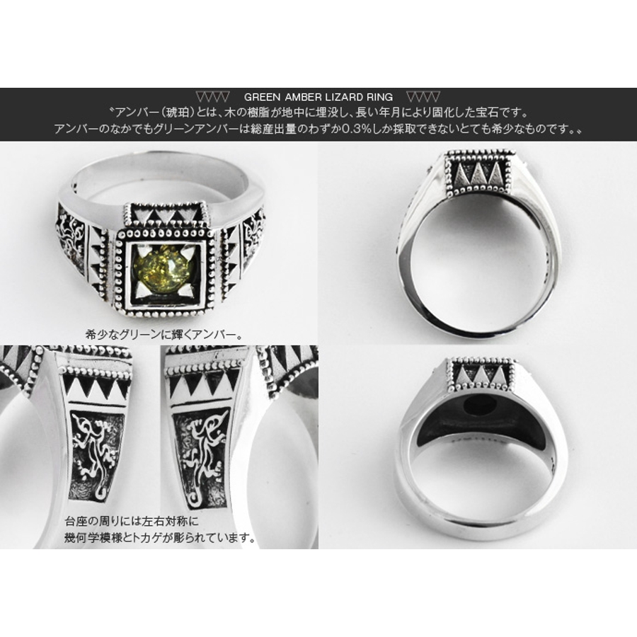 グリーンアンバーリザードリングシルバー925アクセサリー指輪Binichビニッチ