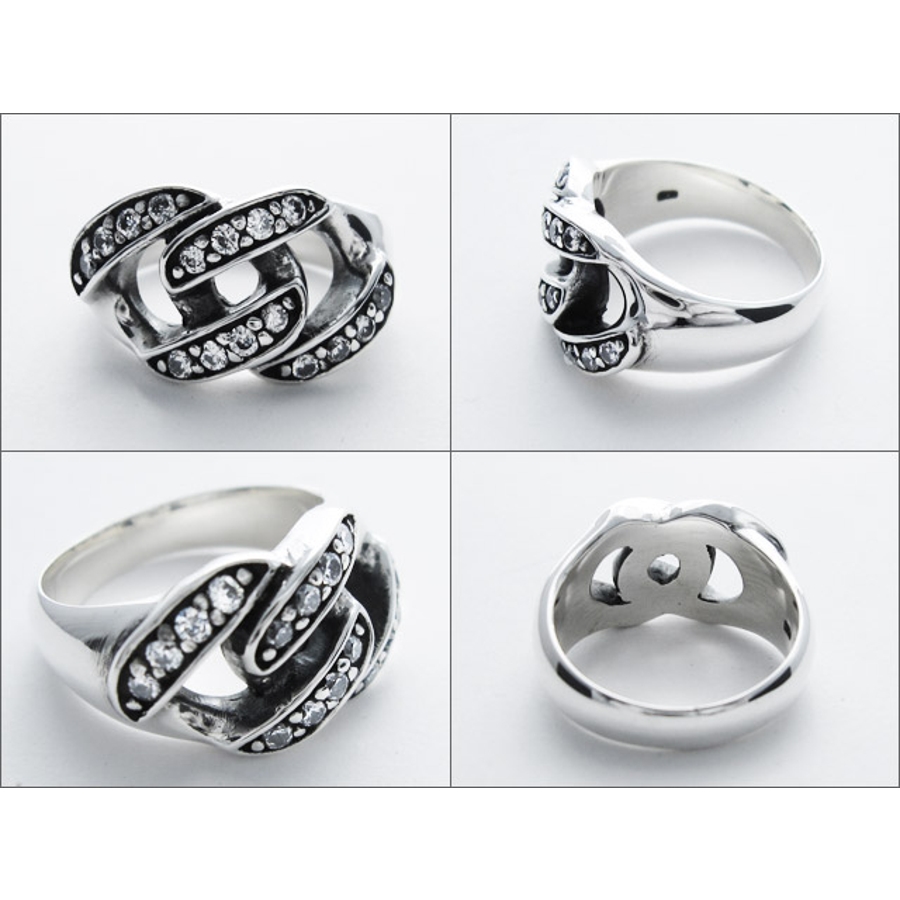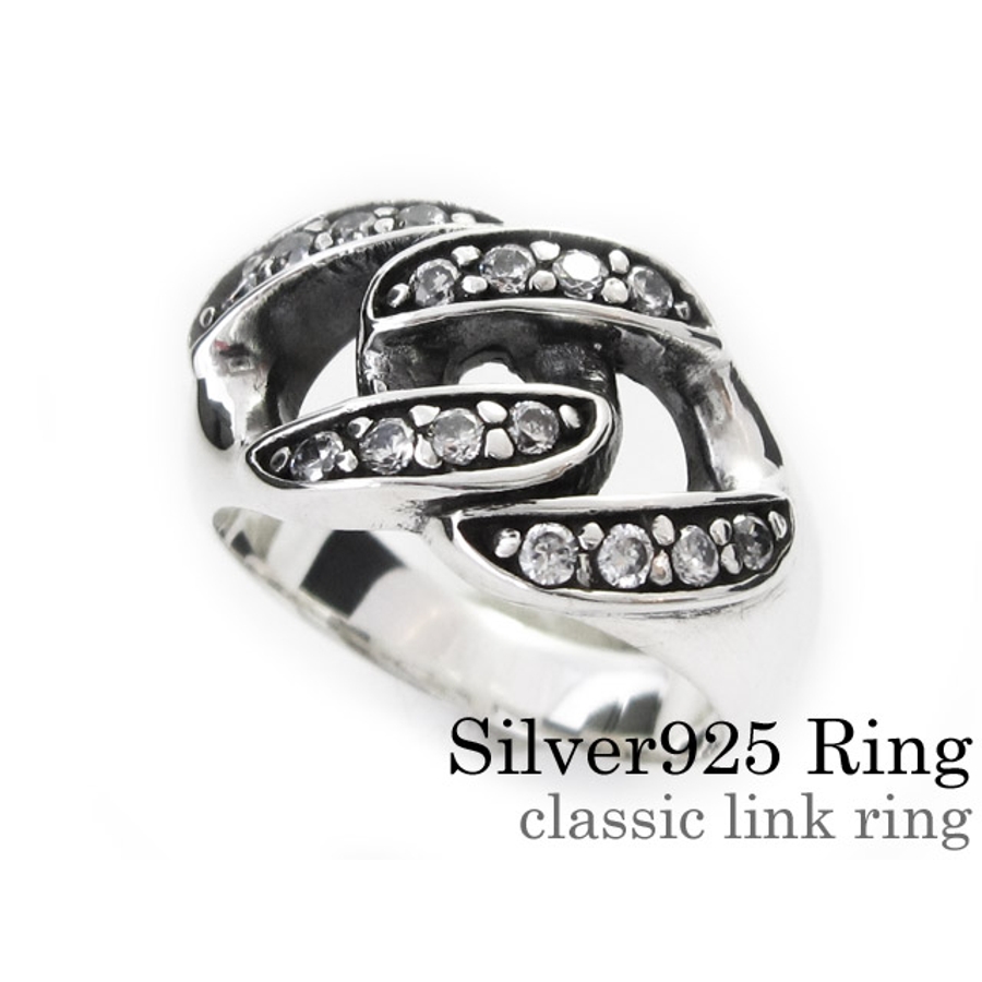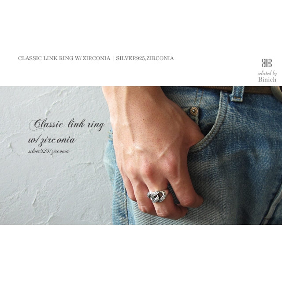クラシックリンクリングwジルコニアシルバー925アクセサリー指輪Binichビニ…