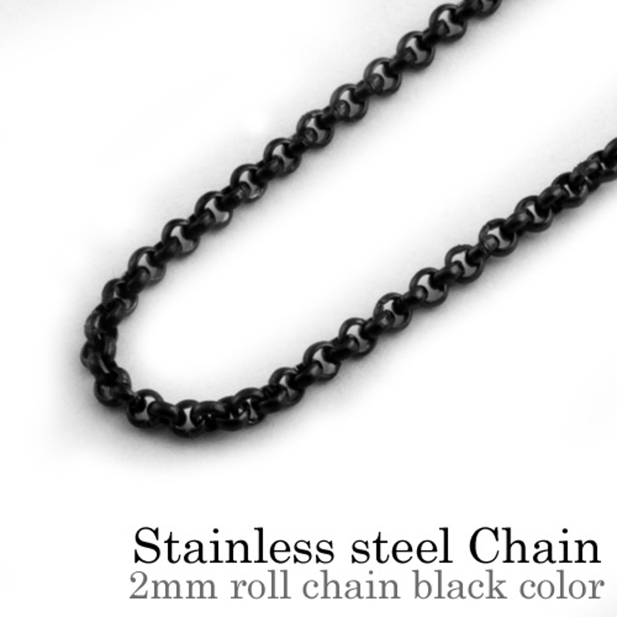 細め2mmロール甲丸ステンレスチェーンブラックカラー45cm50cmBinich…