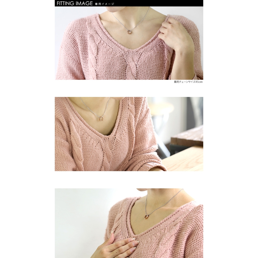 ステンレススチールペンダントIピンクゴールドチェーンセットネックレスレディースハ…