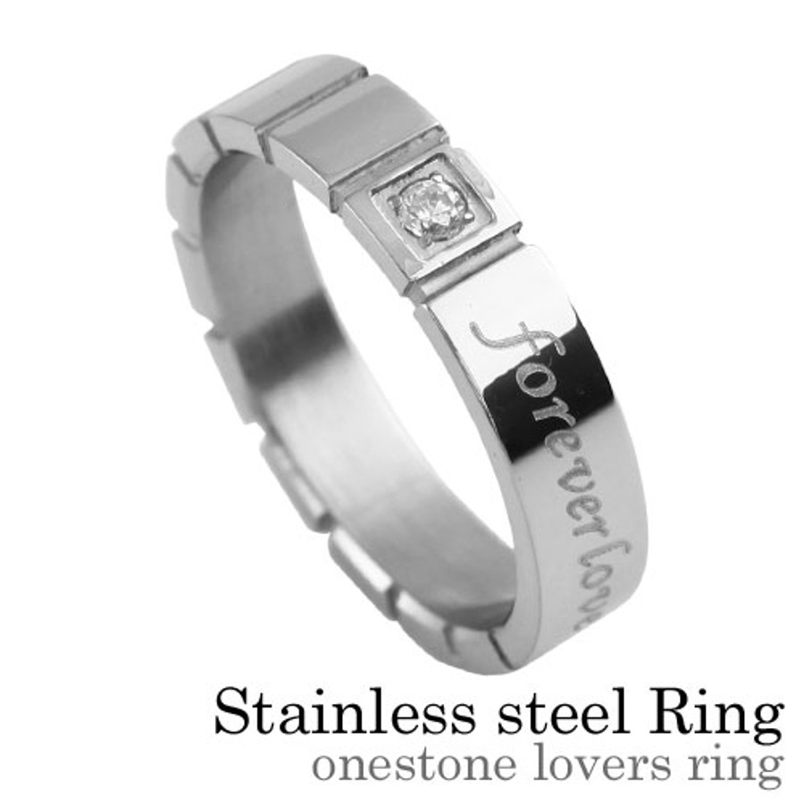 ワンストーンラバーズリングステンレススチールアクセサリー指輪Binichビニッチ