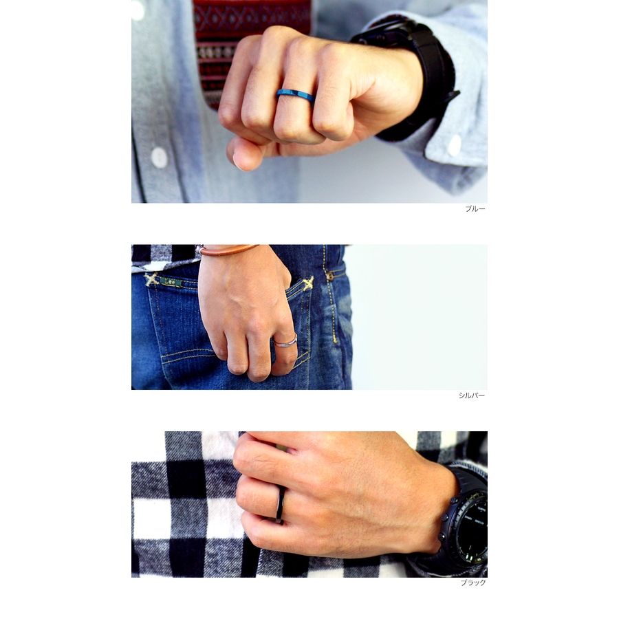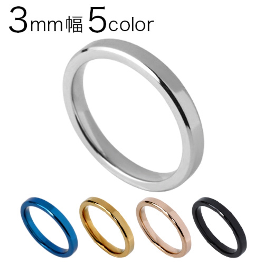 3mm幅カラースチールリングブルーブラックシルバーゴールドステンレススチールシン…