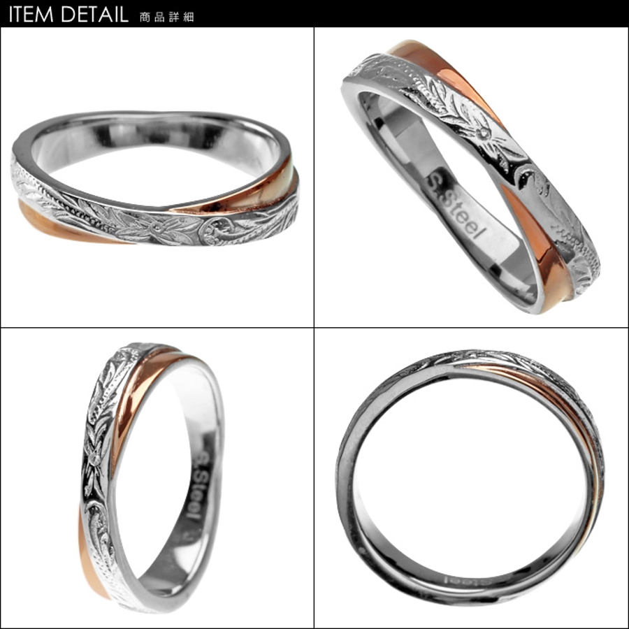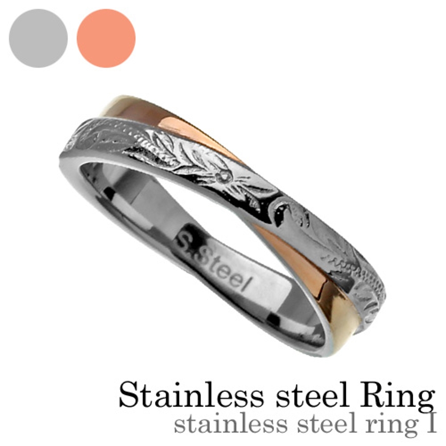 細やかで美しい装飾が魅力のハワイアンテイストのリングです。シンプルな平打ちと彫金が施されたリングを交差させたデザインが手元を華やかに彩ってくれます。また素材には、ステンレススチールを採用。ノンアレルギー素材でアレルギー体質の方もお手軽にハワイアン気分が楽しめます。
