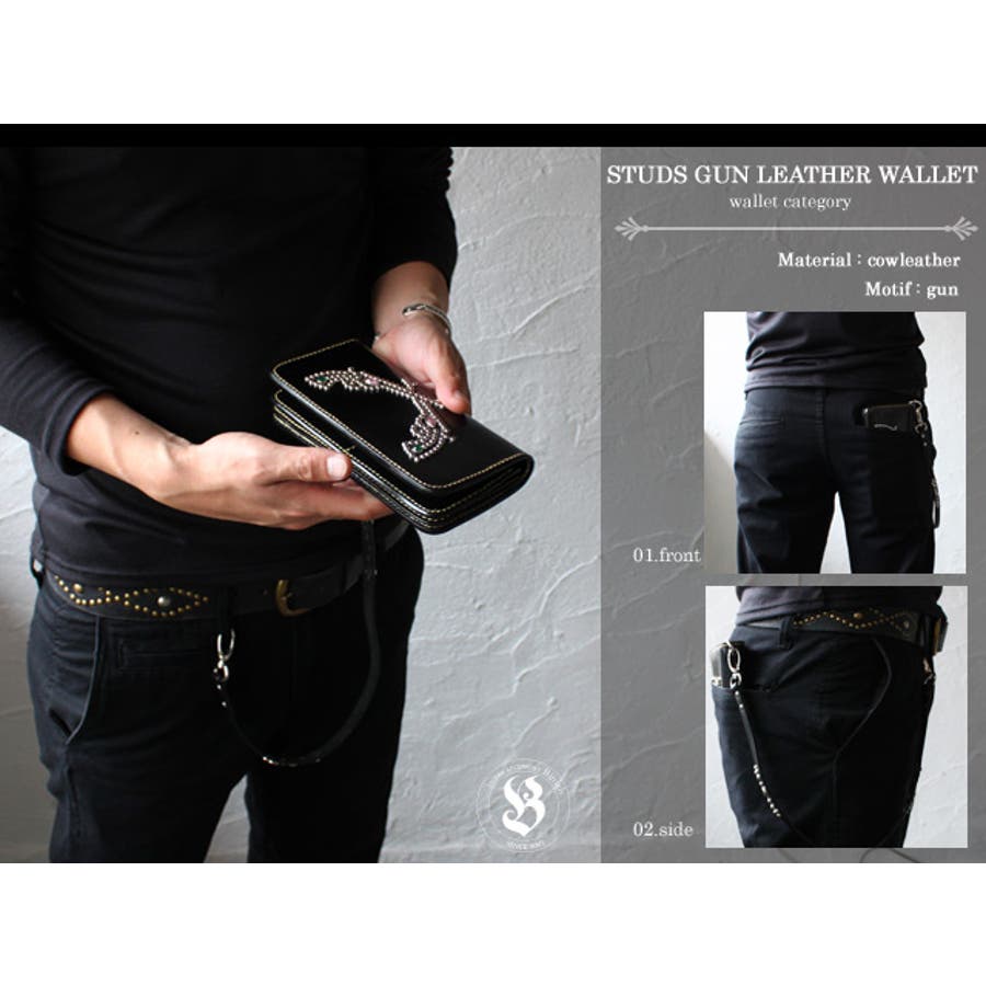 スタッドガンレザーウォレット牛革財布Binichビニッチ