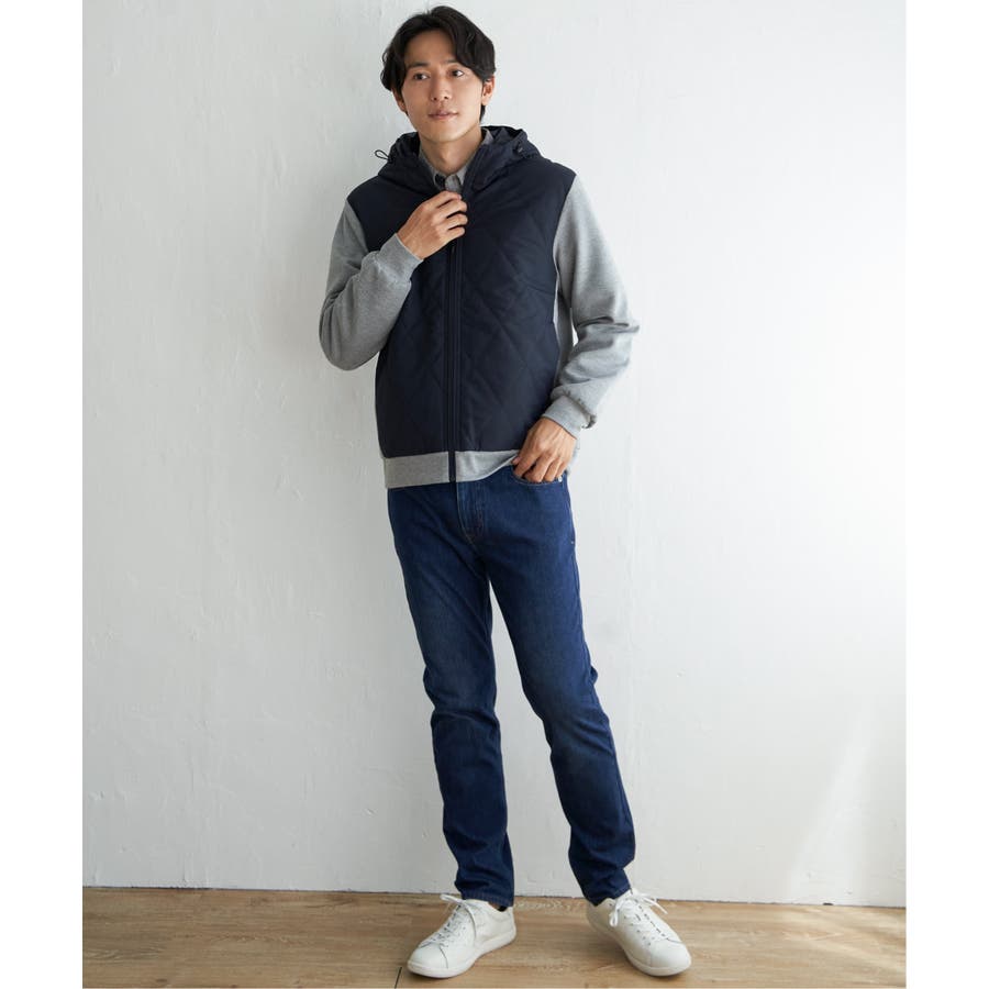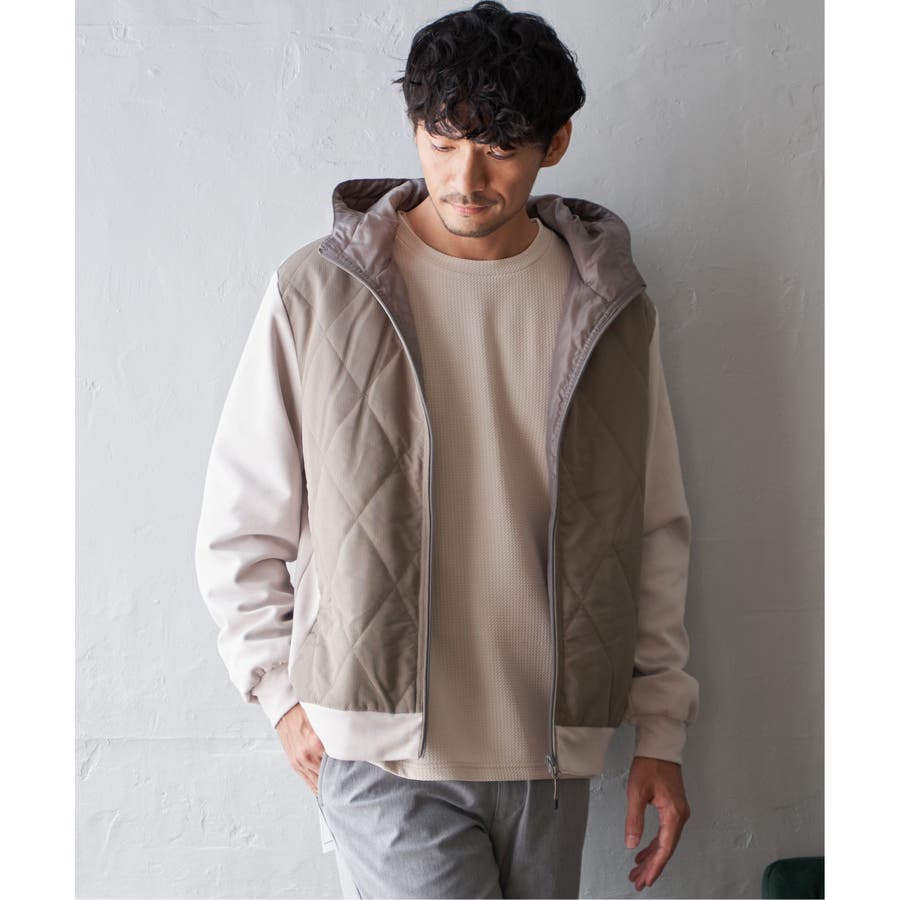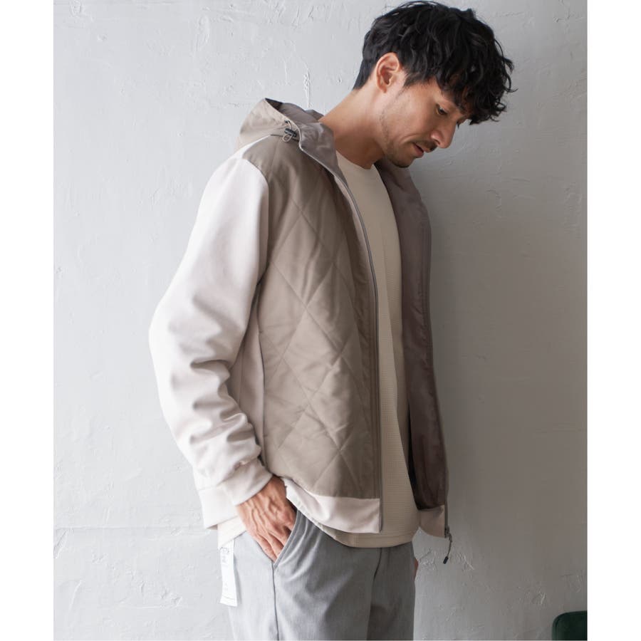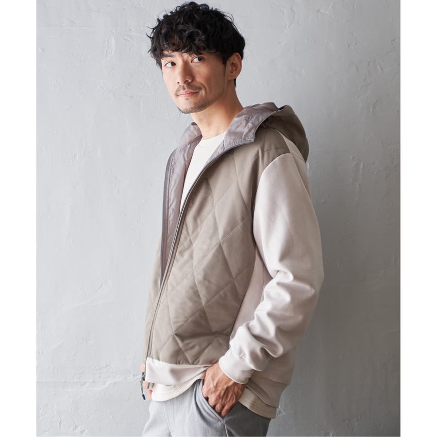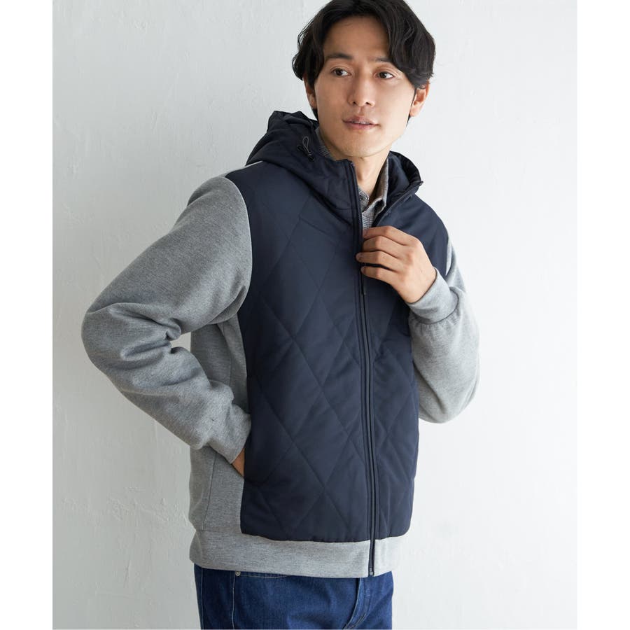 「切り替え」デザインをアウターに採用した、ikka らしい中綿パーカー。