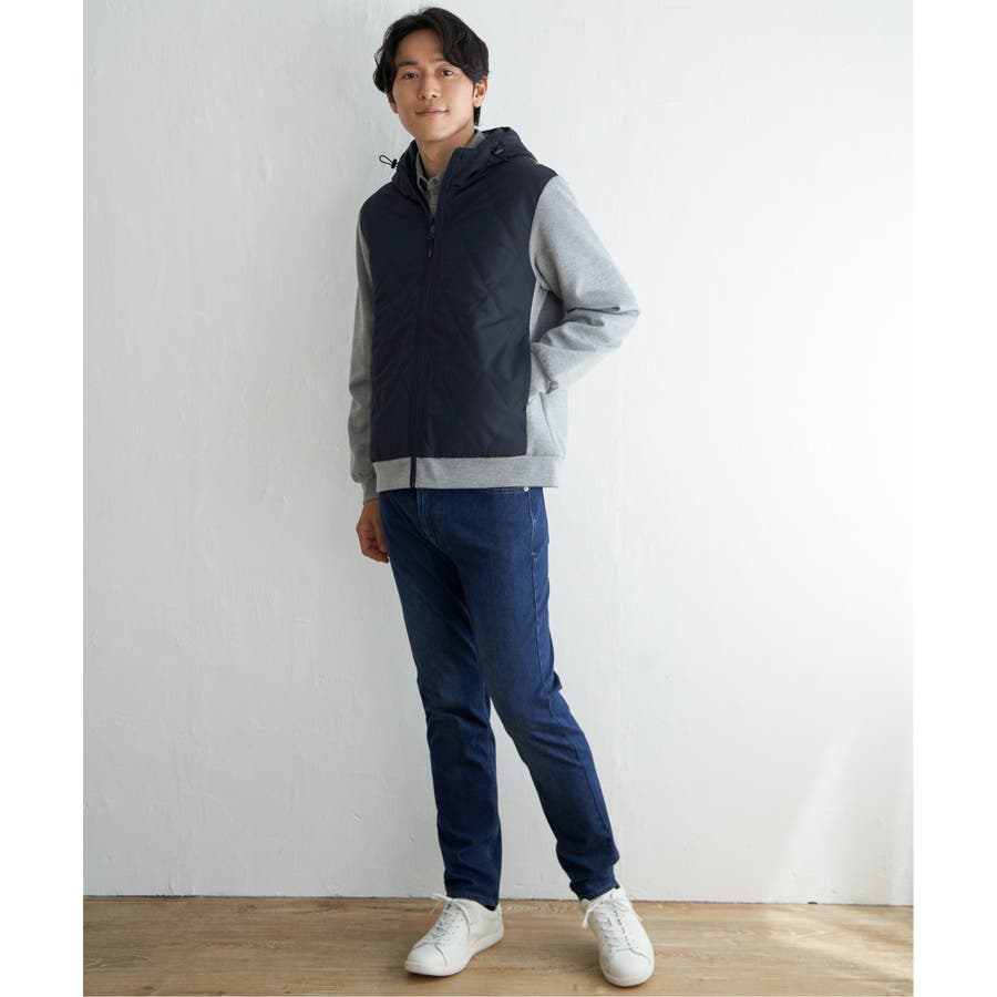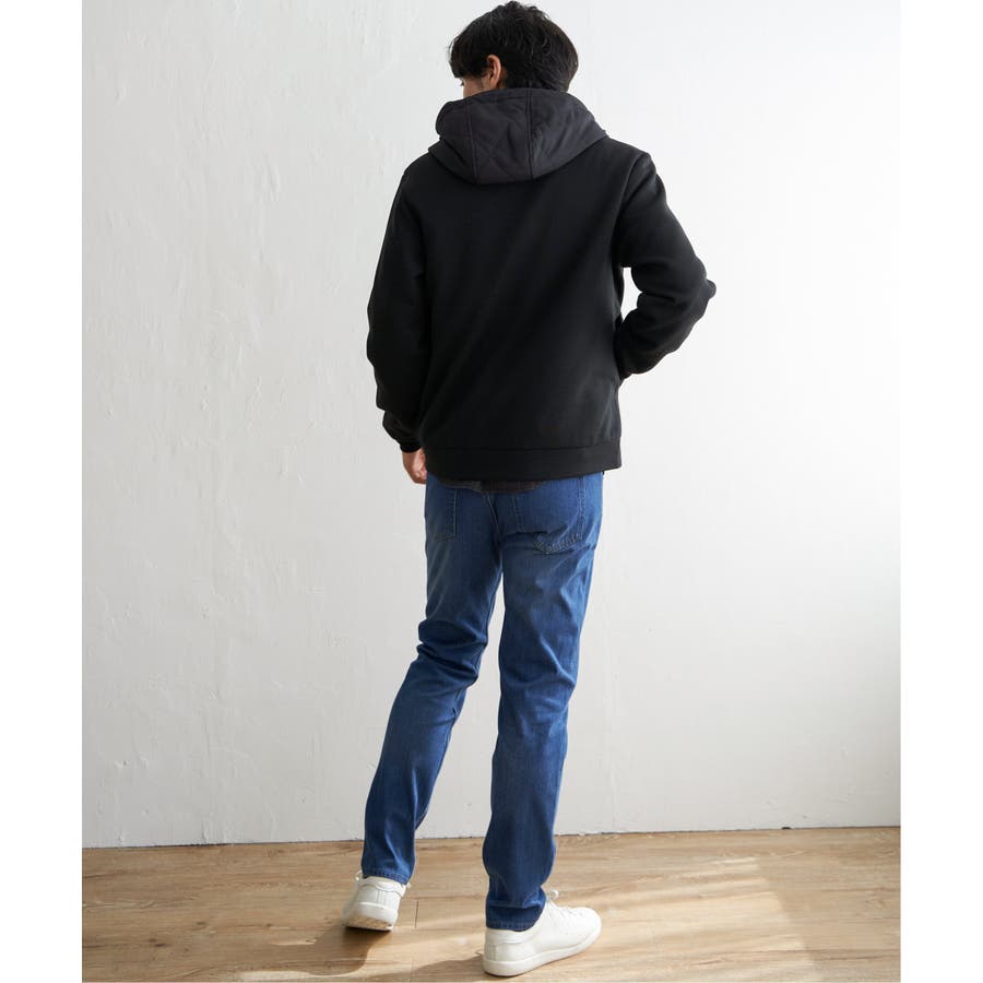 軽量であたたかな保温中綿「 sorona(R) 」を使用した異素材コンビのパーカー。