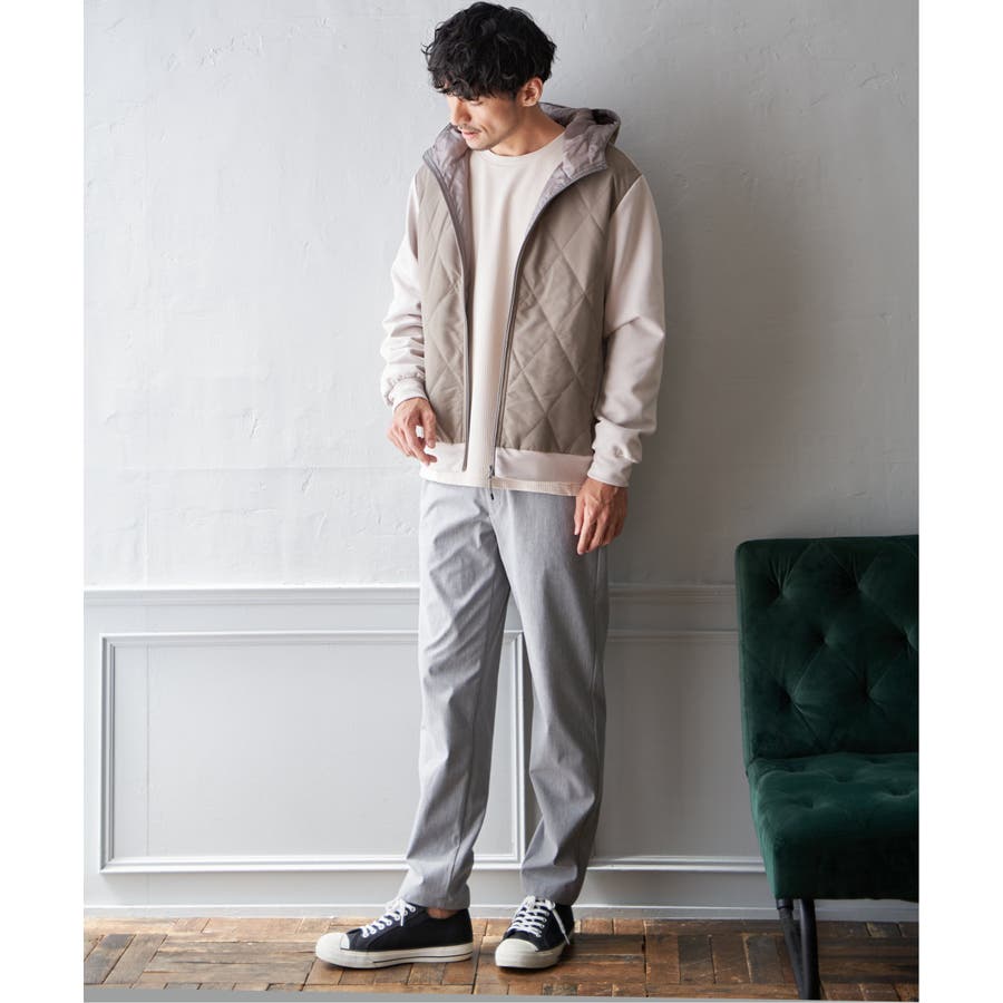 ダイヤキルトの身頃×ジャージーの異素材使い。