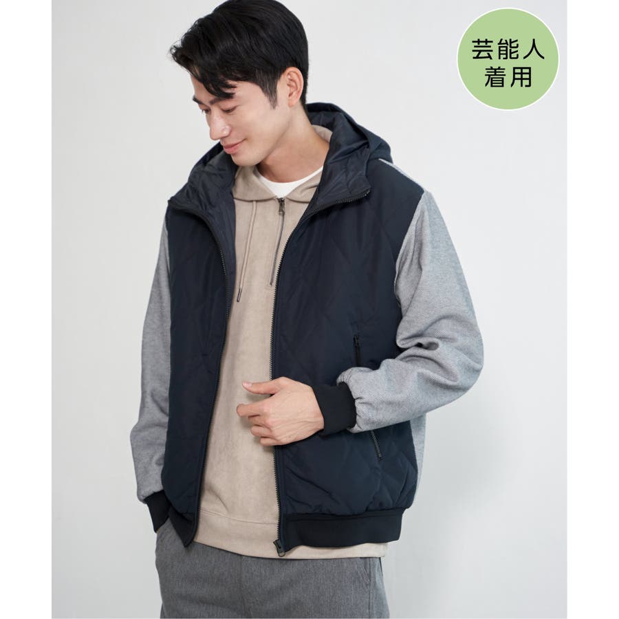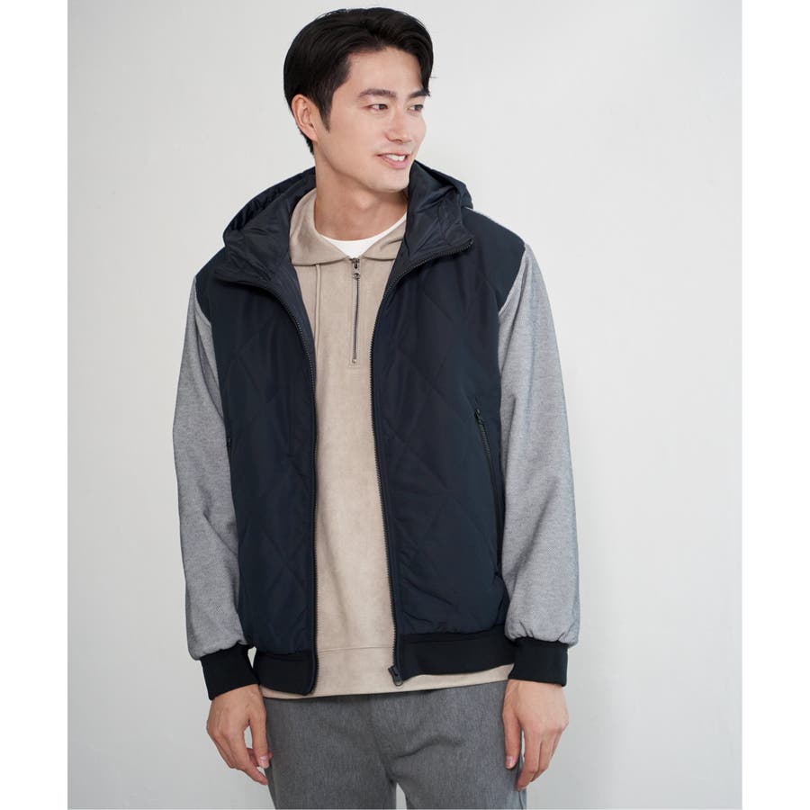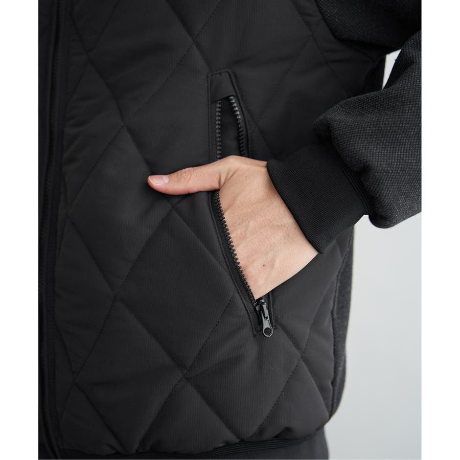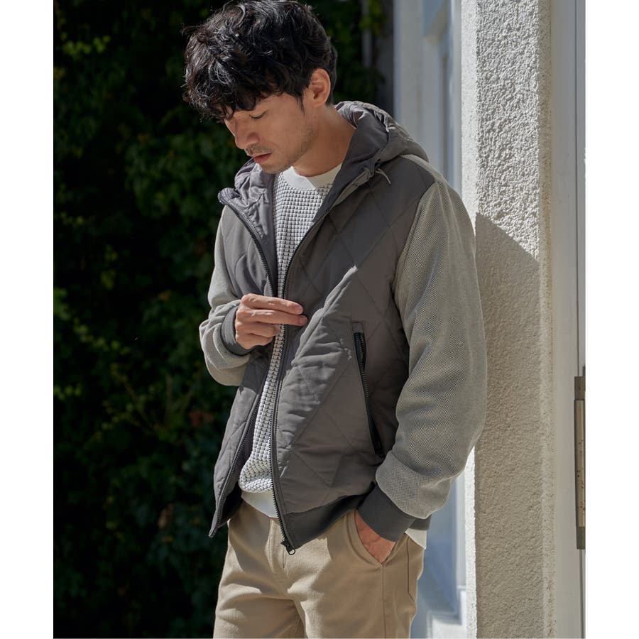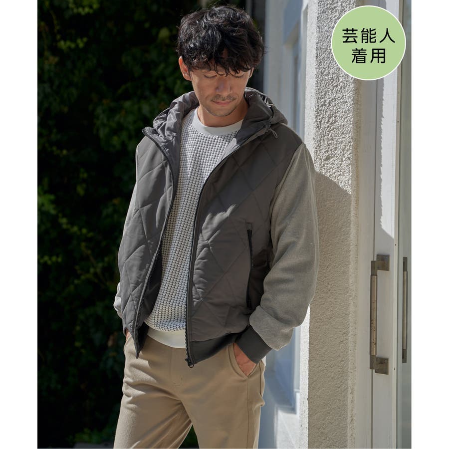 ダイヤキルトの身頃×ジャージの異素材使い。