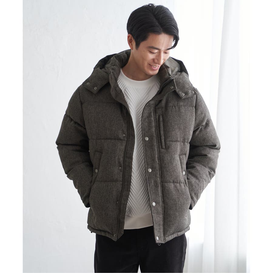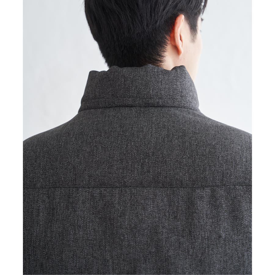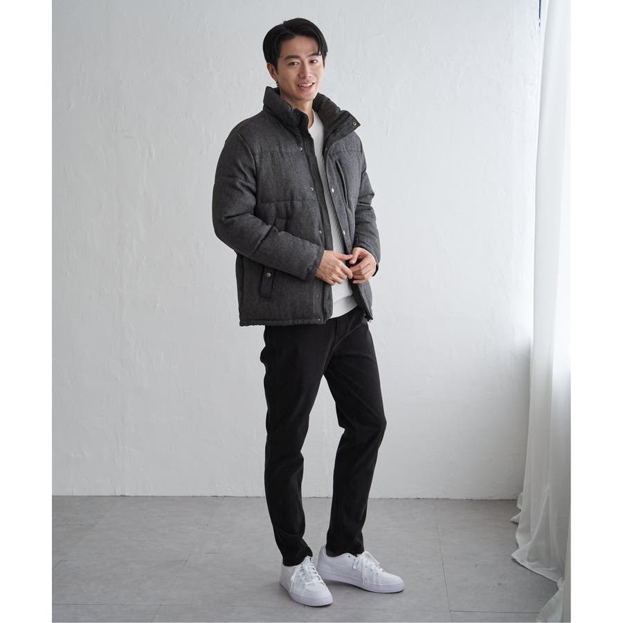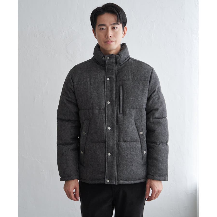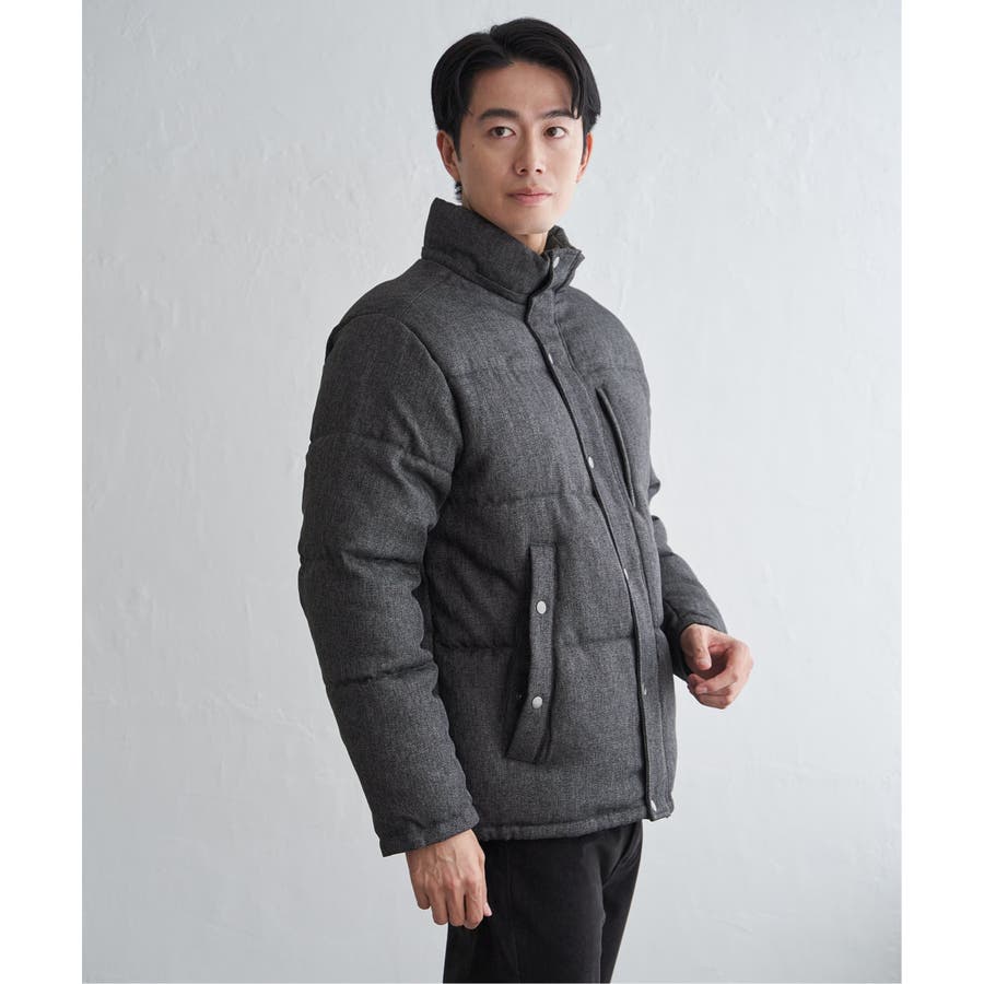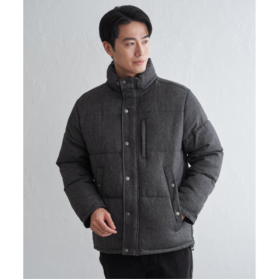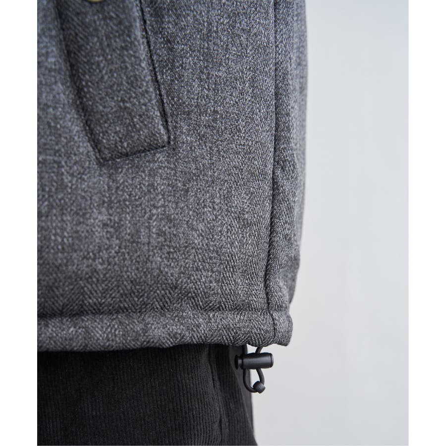 表情感のあるツイード見え素材使用の中綿ブルゾン。