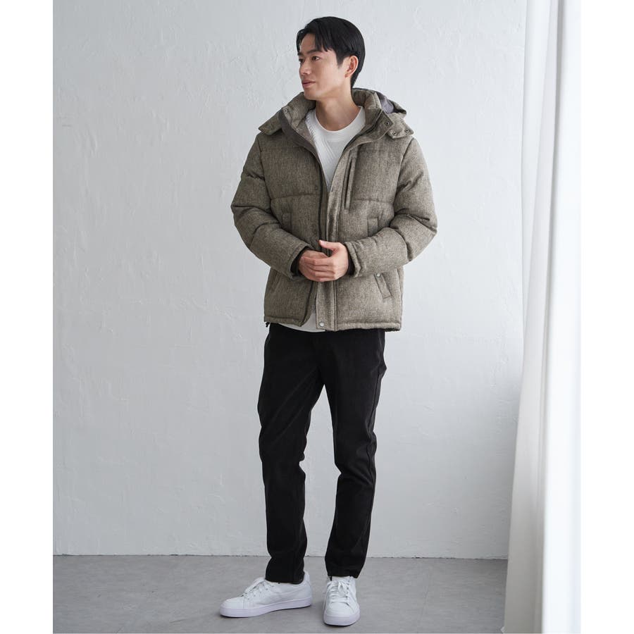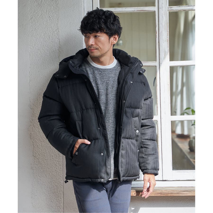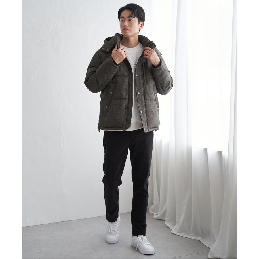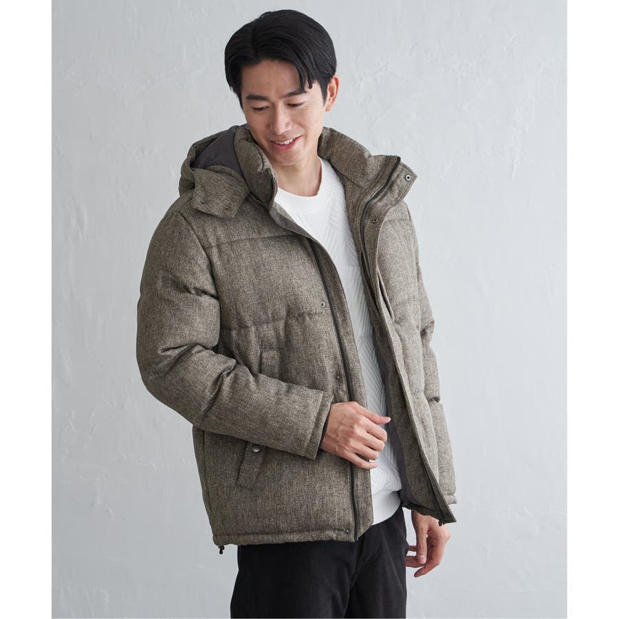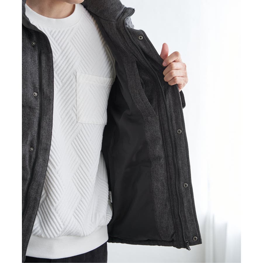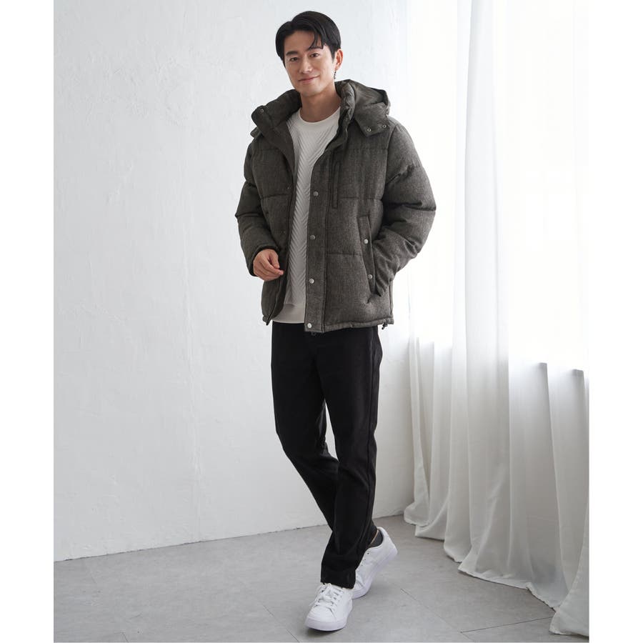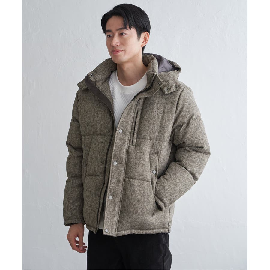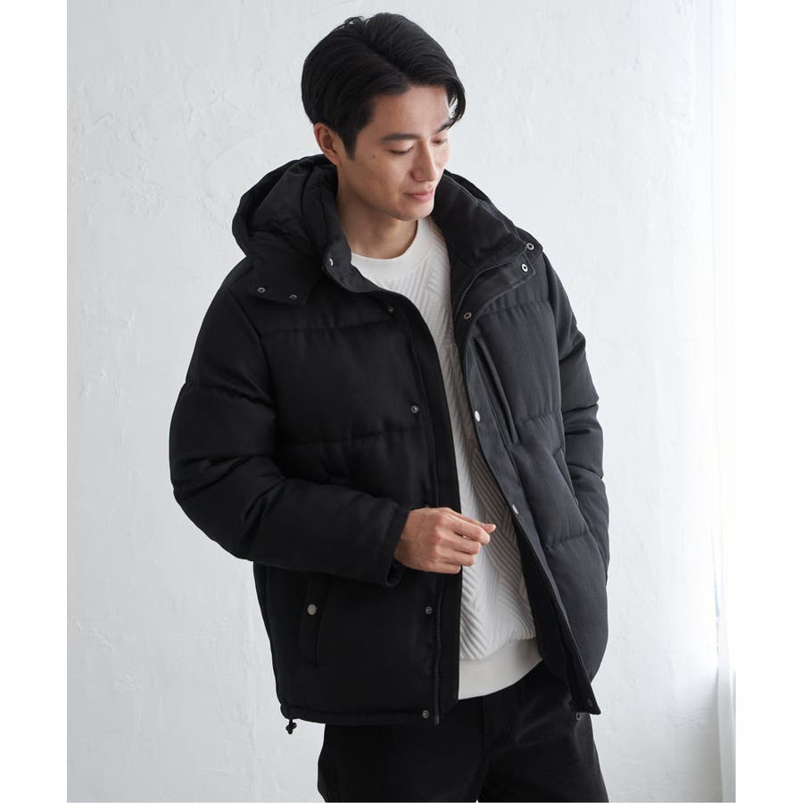 表情感のあるツイード見え素材使用の中綿ブルゾン。