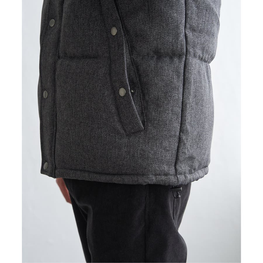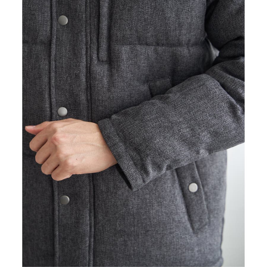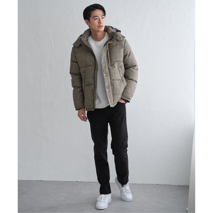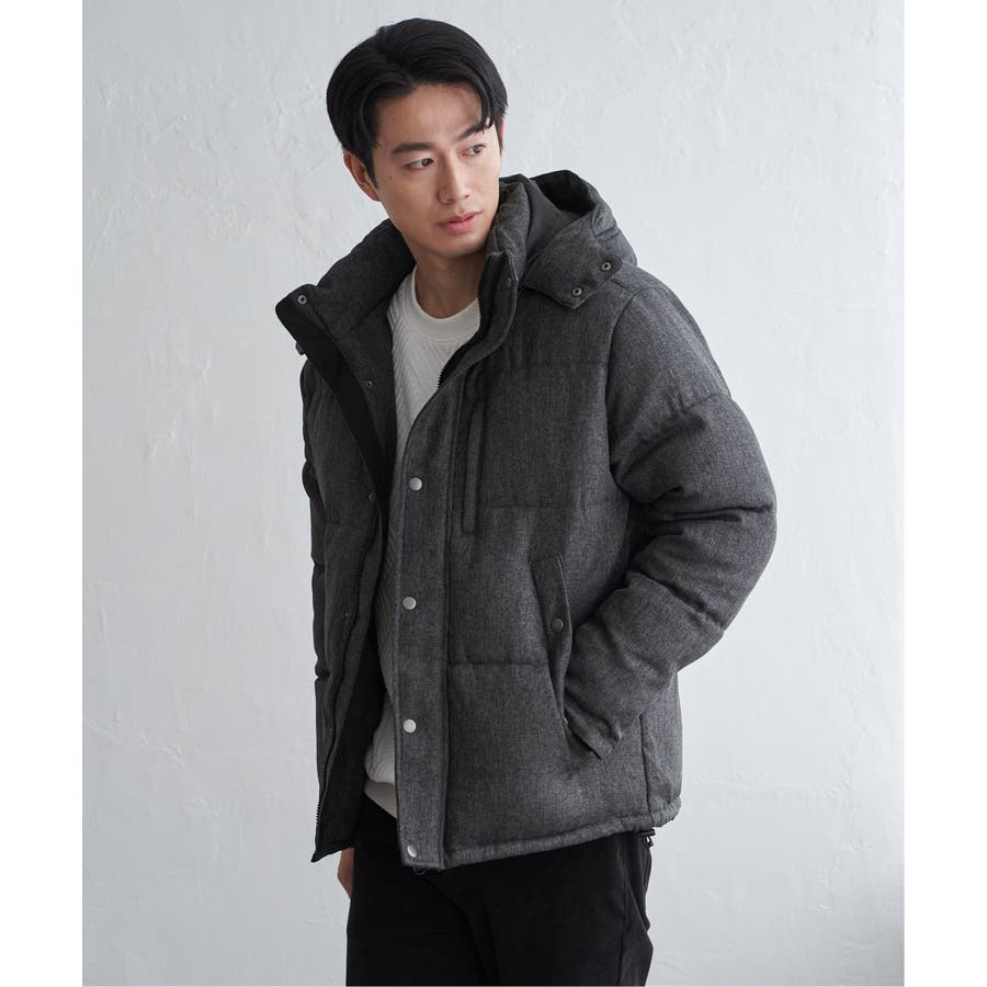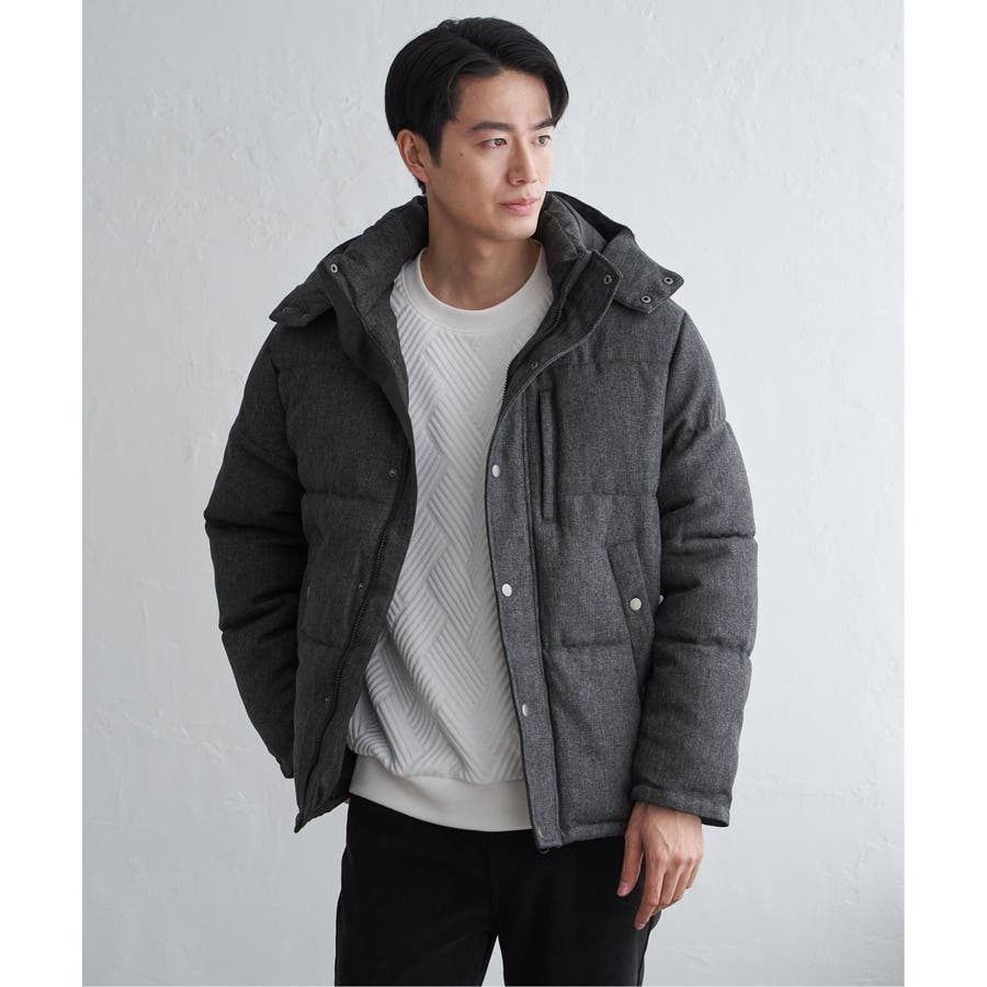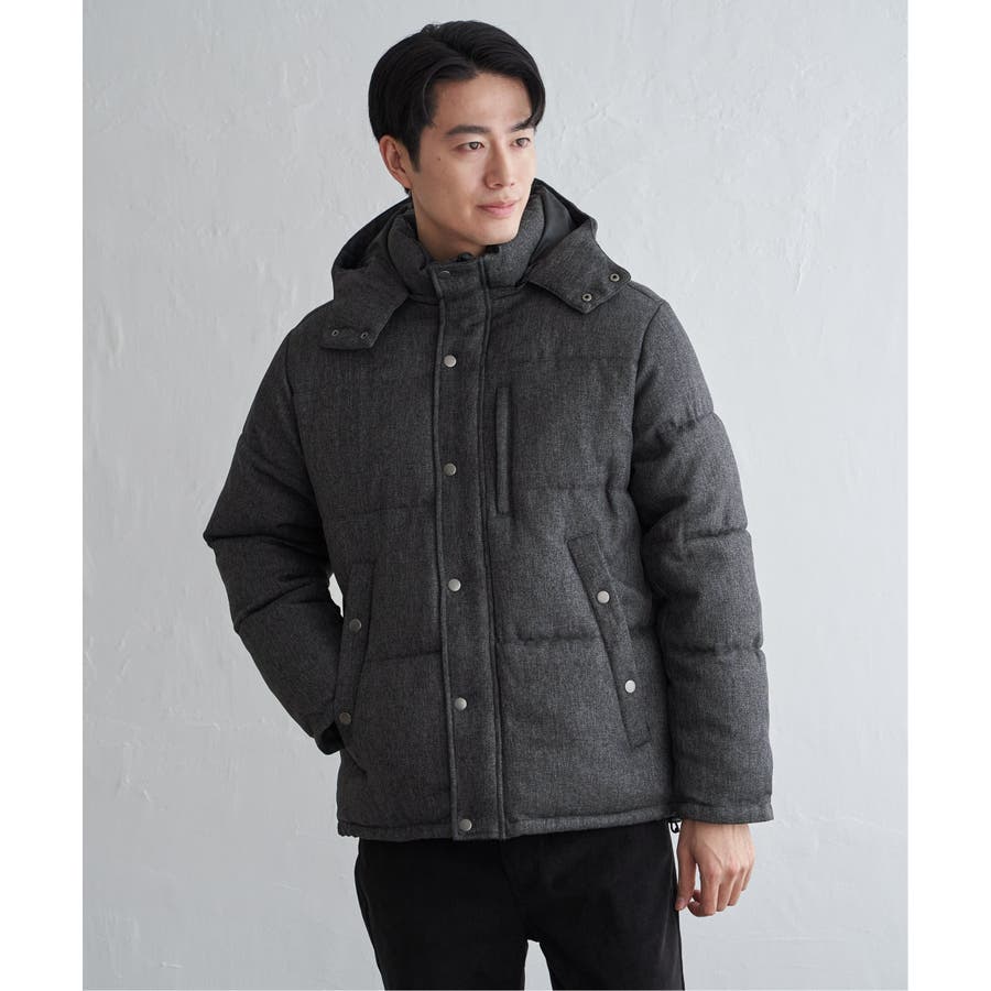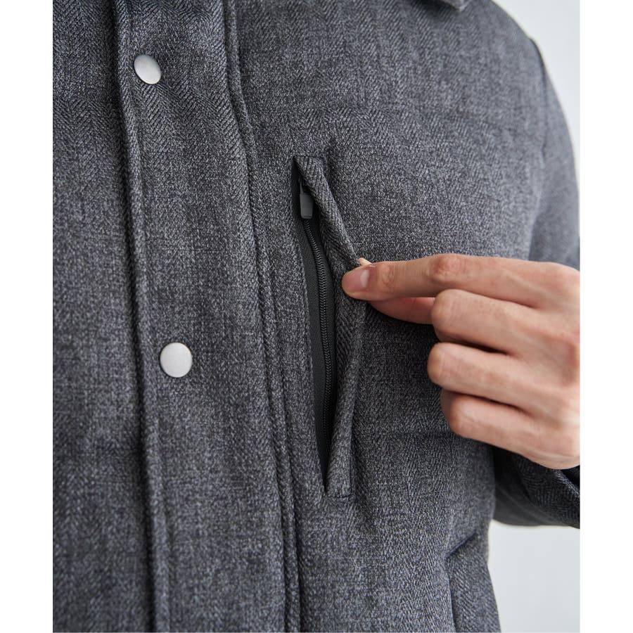 表情感のあるツイード見え素材使用の中綿ブルゾン。