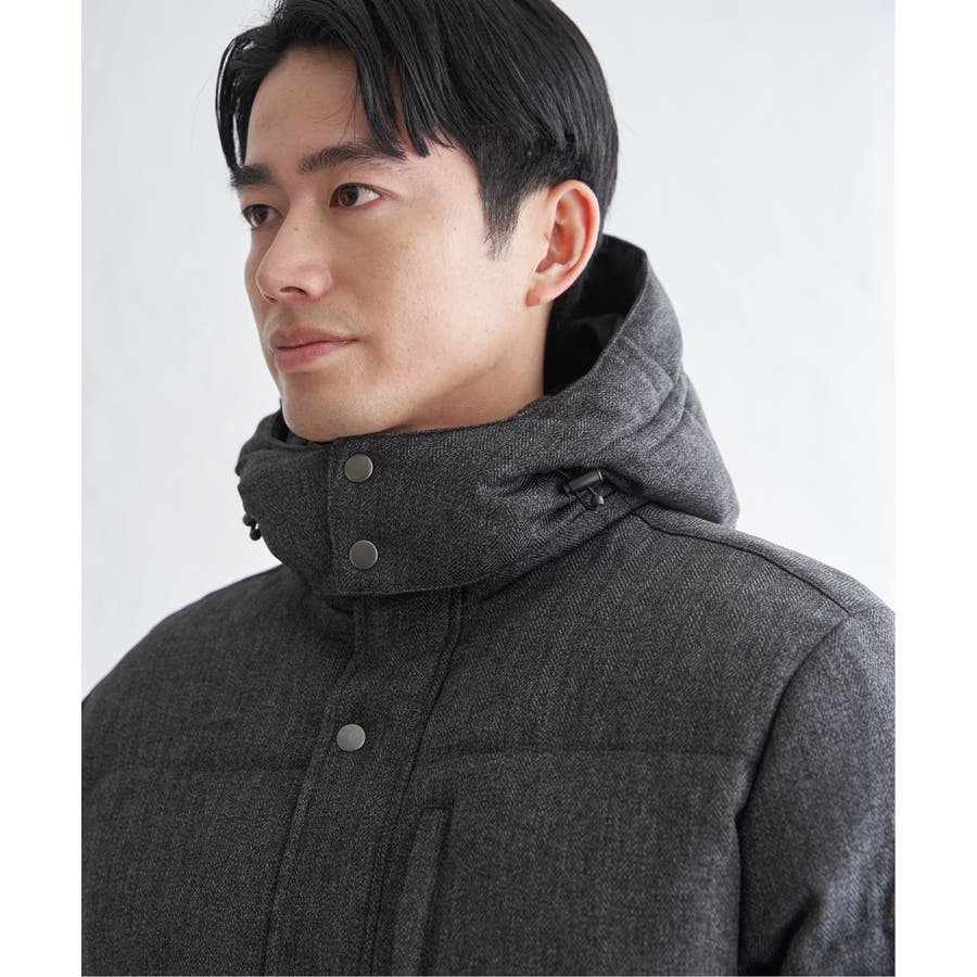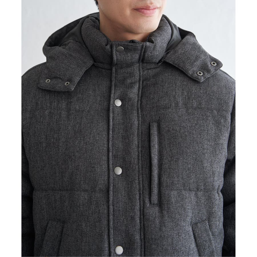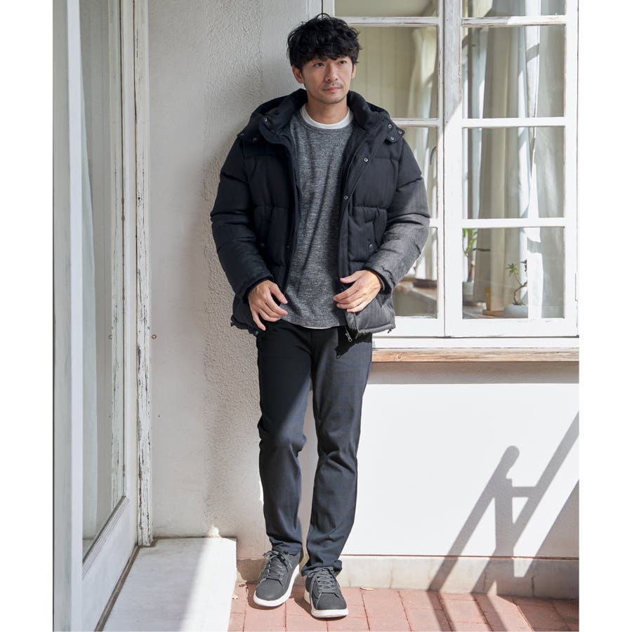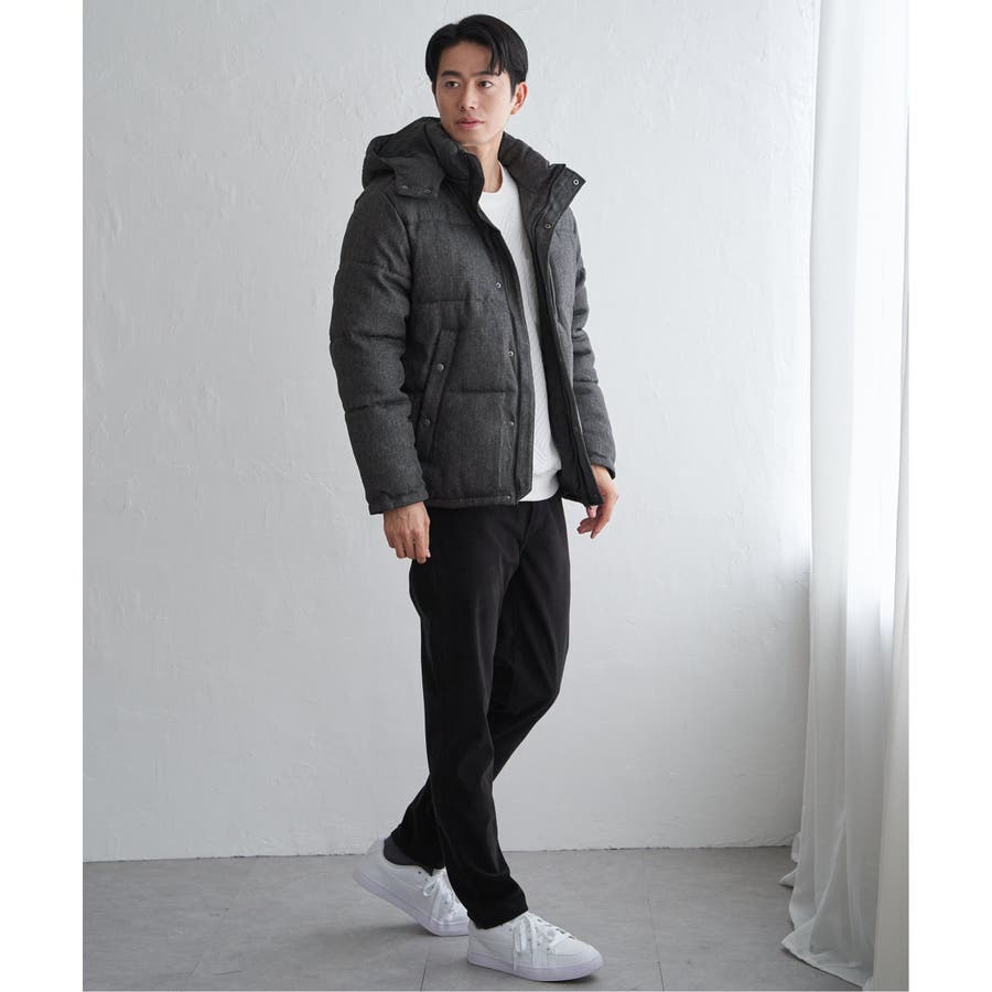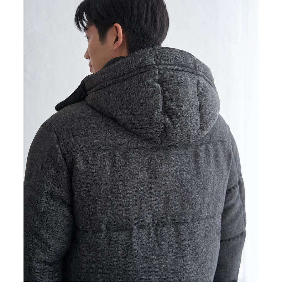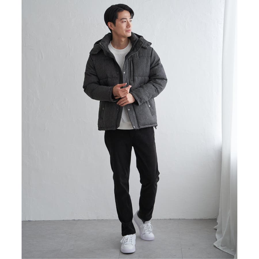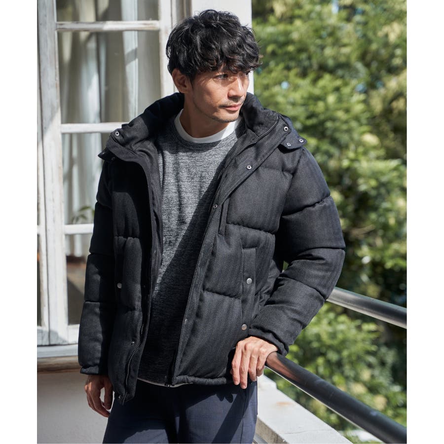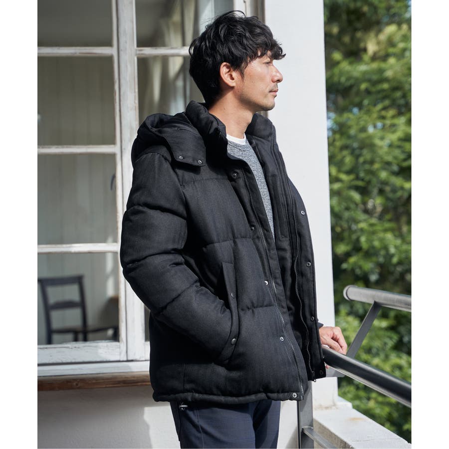 表情感のあるツイード見え素材使用の中綿ブルゾン。