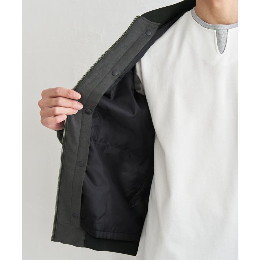 内側には取り外し可能な中綿ベストライナーをセットし、気温に応じて単体・重ね着の使い分けが可能。