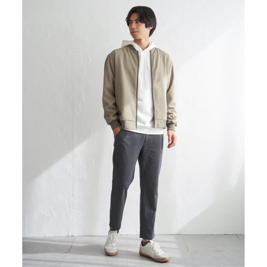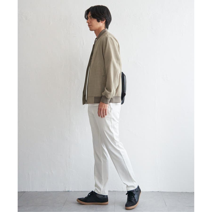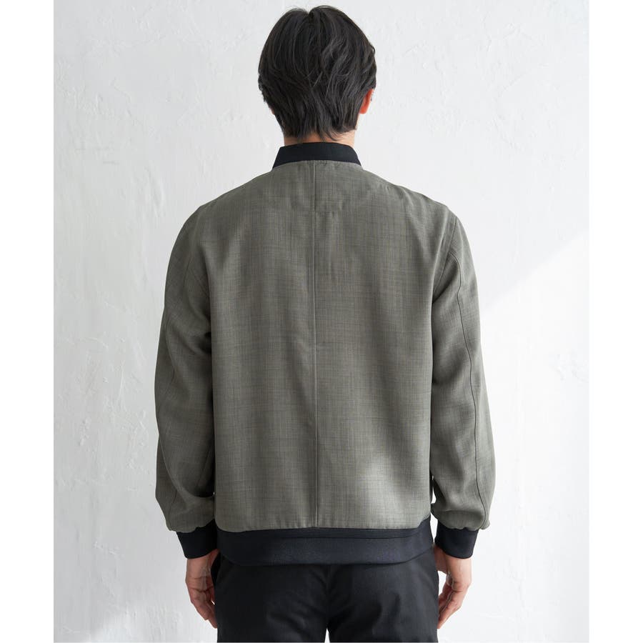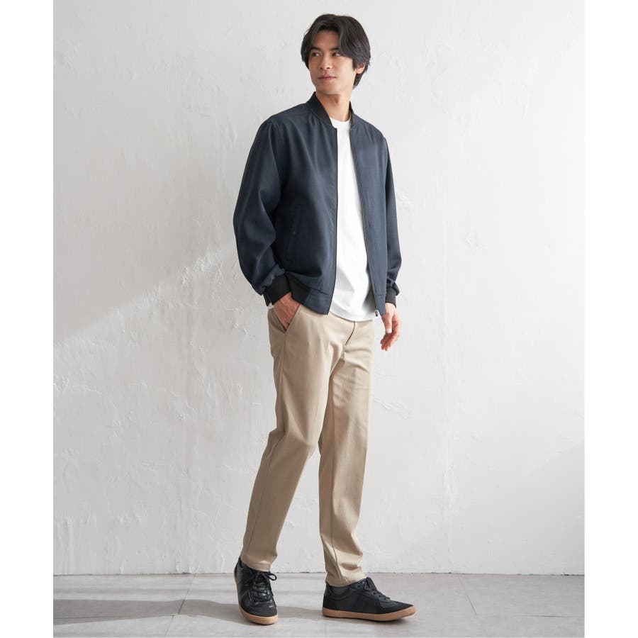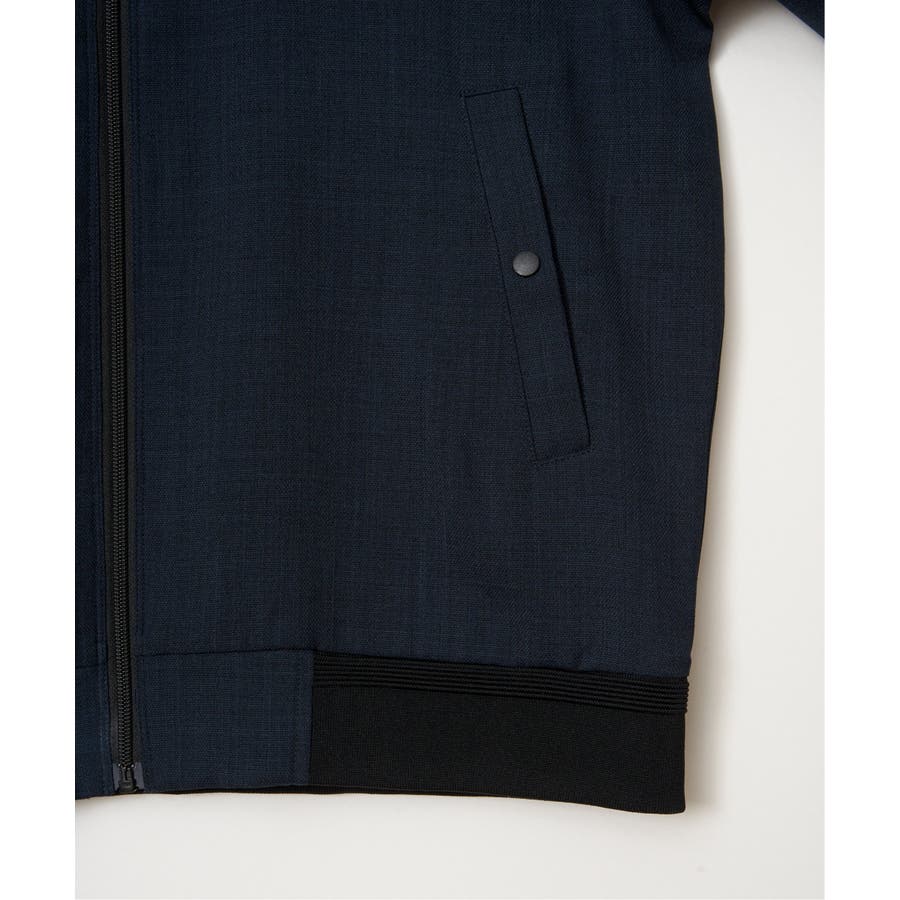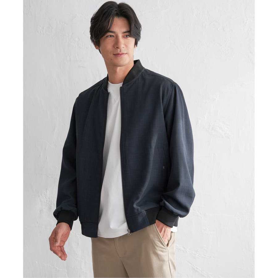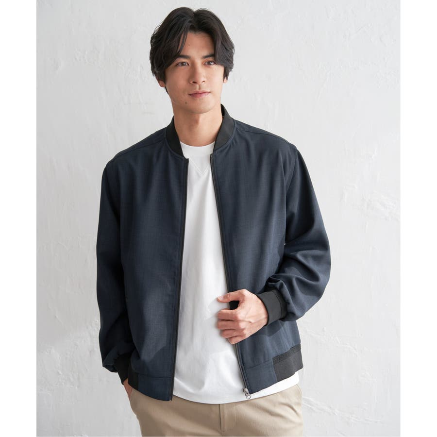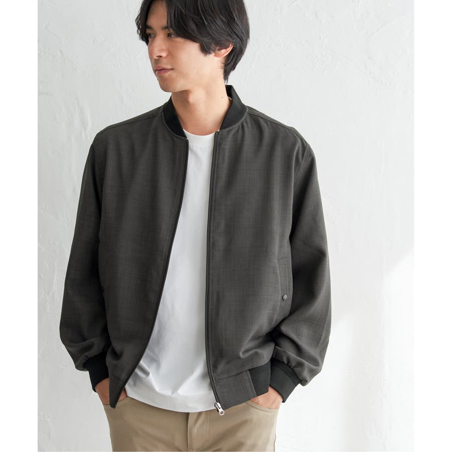 麻のような表情を持つ、清涼感のあるポリエステル素材を使用したリネンライクブルゾン。