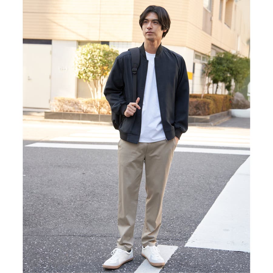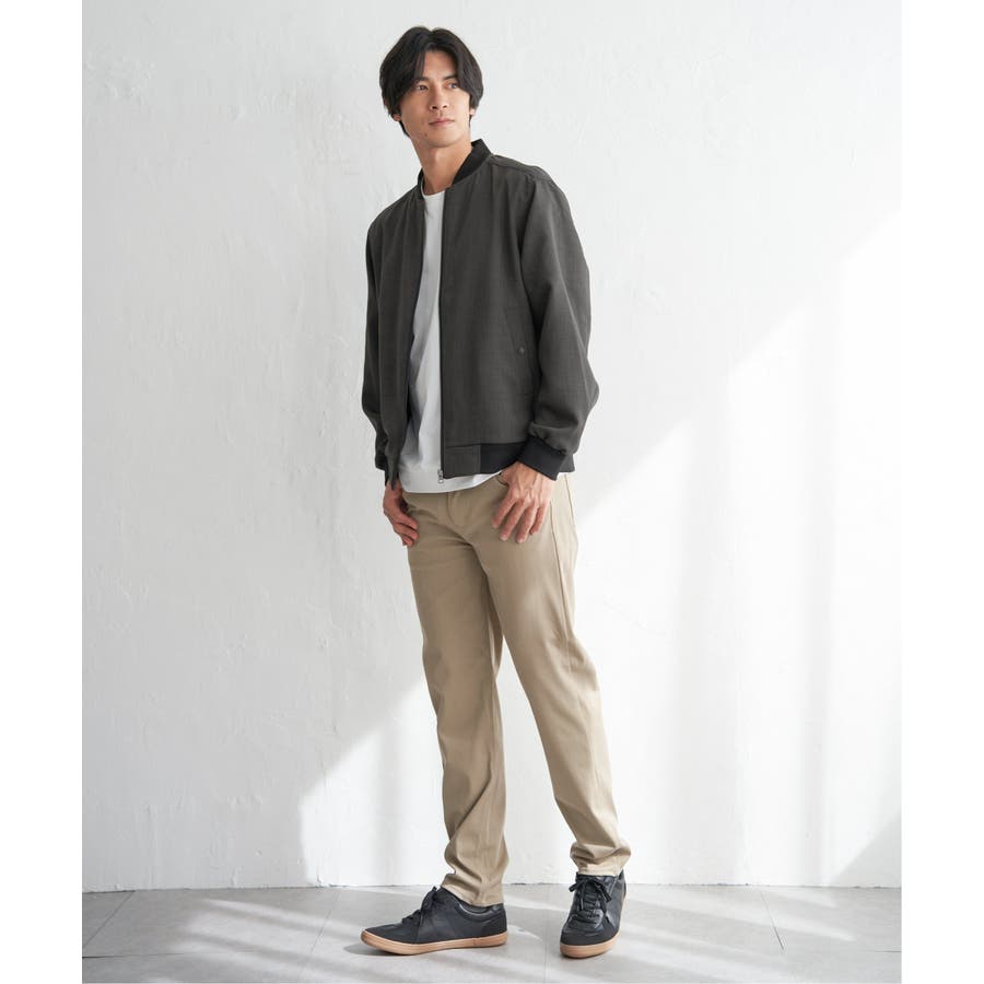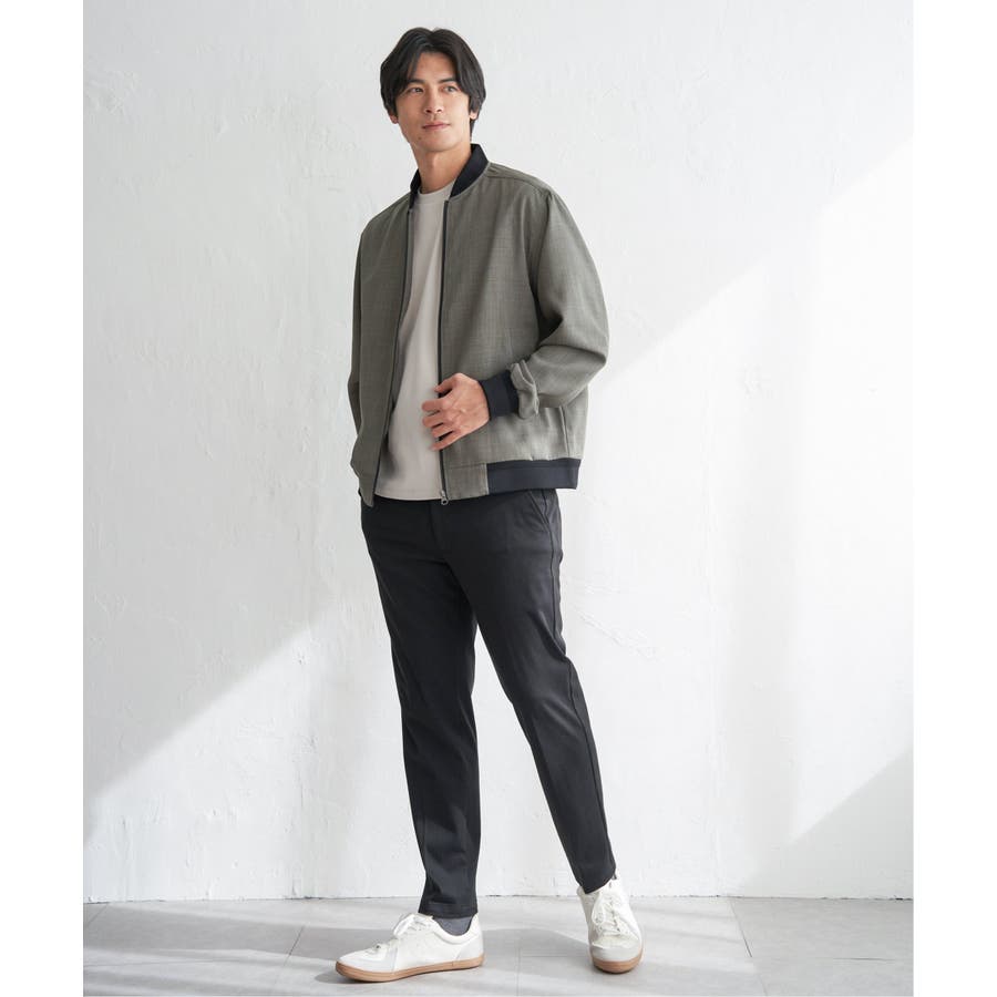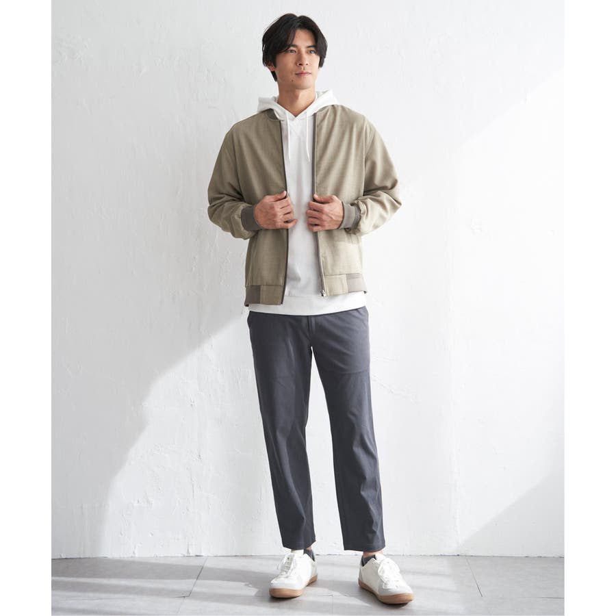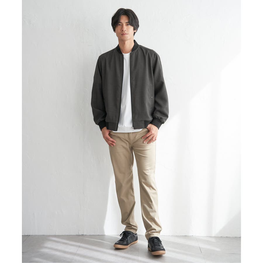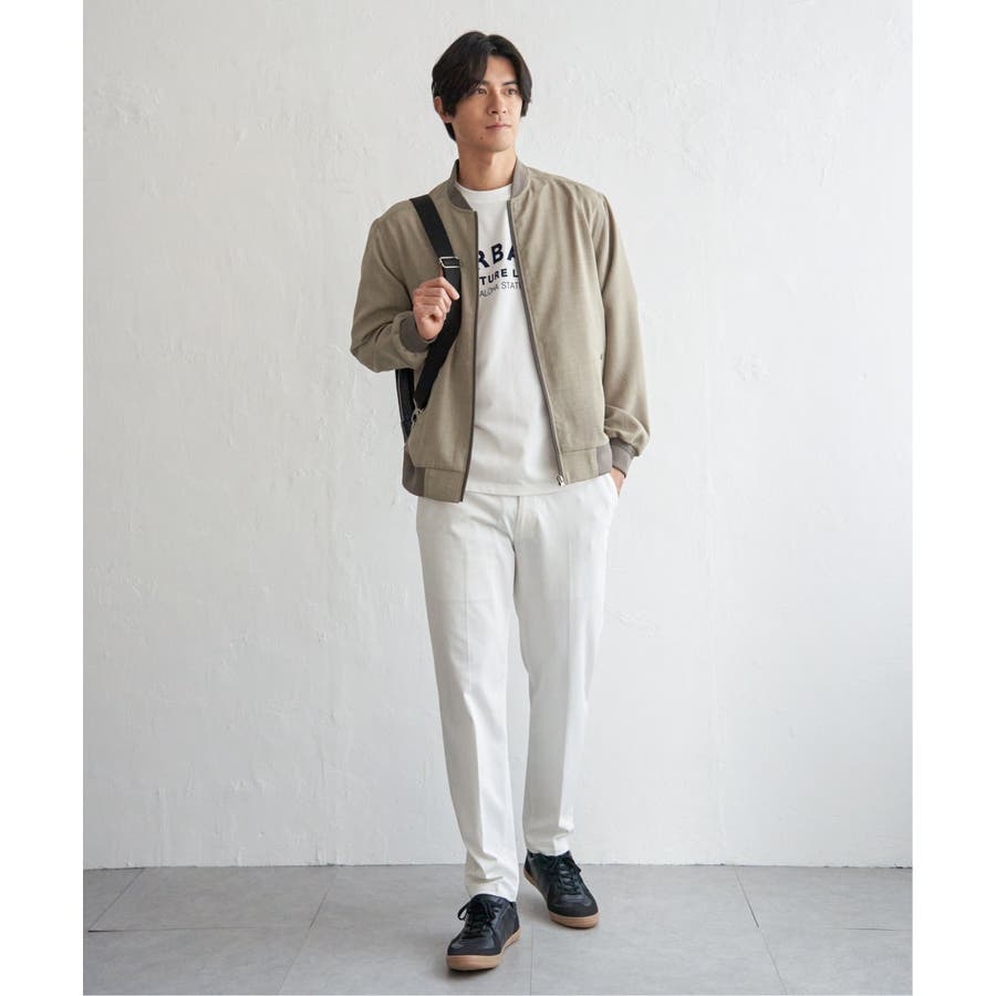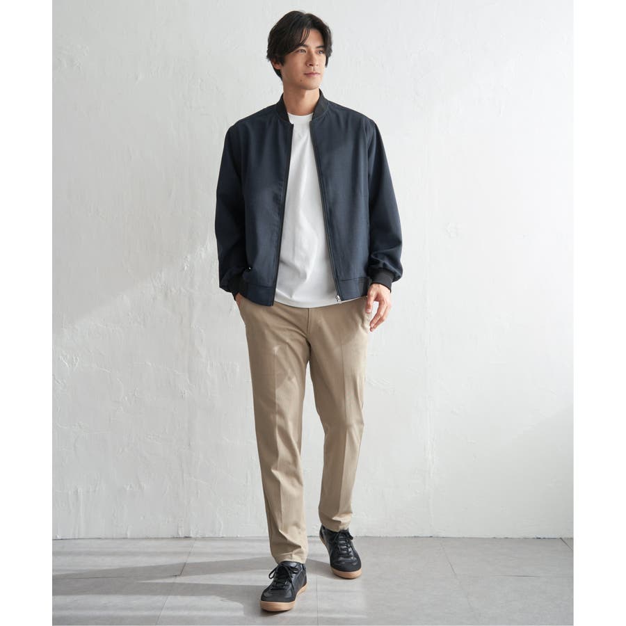 麻のような表情を持つ、清涼感のあるポリエステル素材を使用したリネンライクブルゾン。