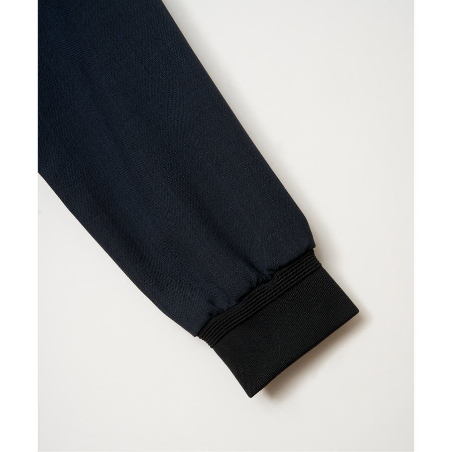 襟・袖・裾に配したリブは身頃と微配色でさりげないアクセント。