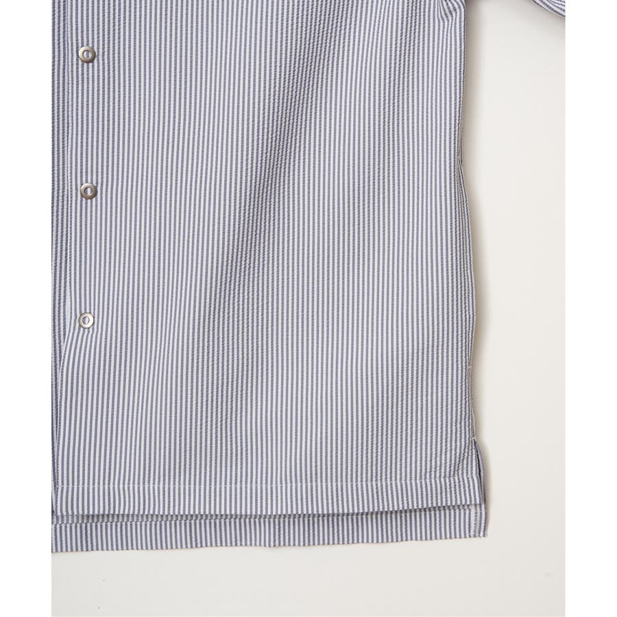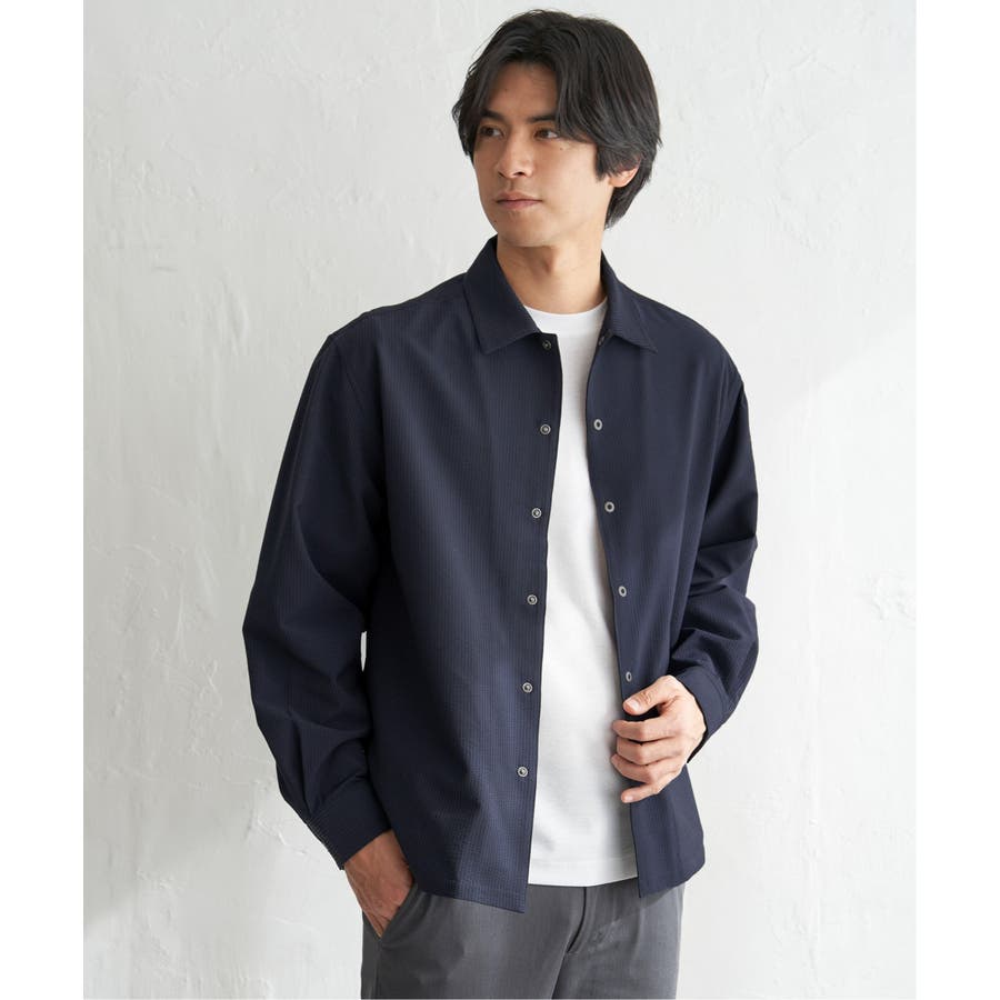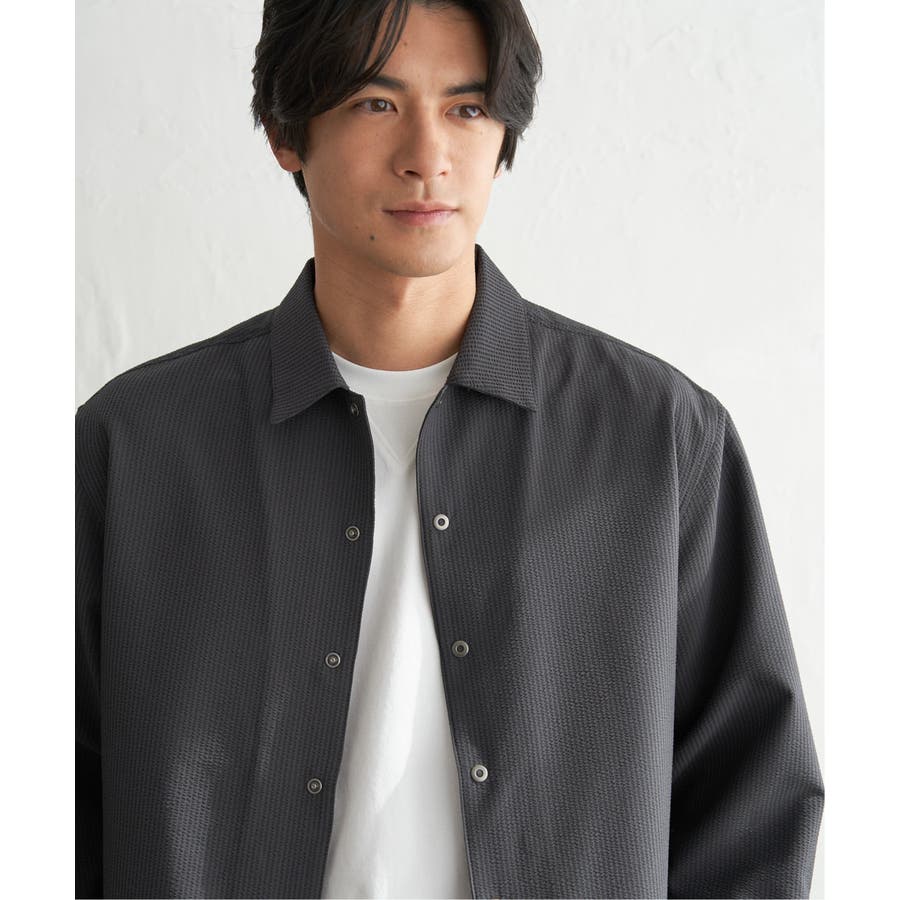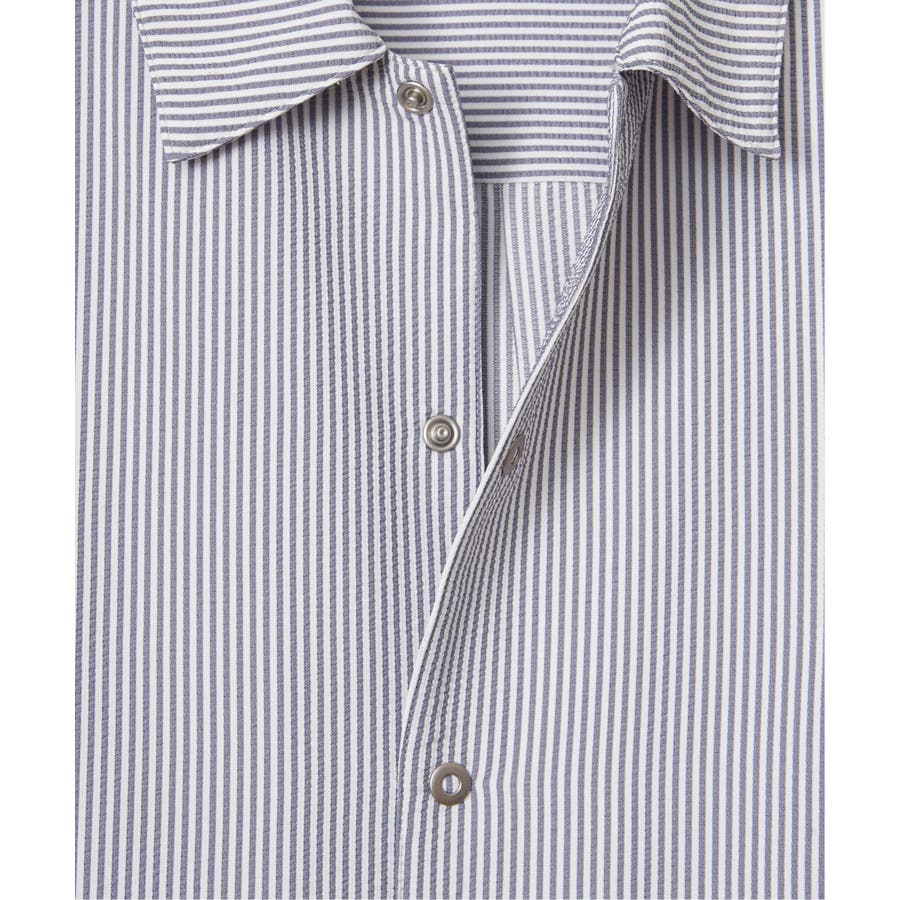 凹凸感と清涼感が特徴のポリエステルサッカー素材を使用した、イージーケア仕様のスナップシャウター。