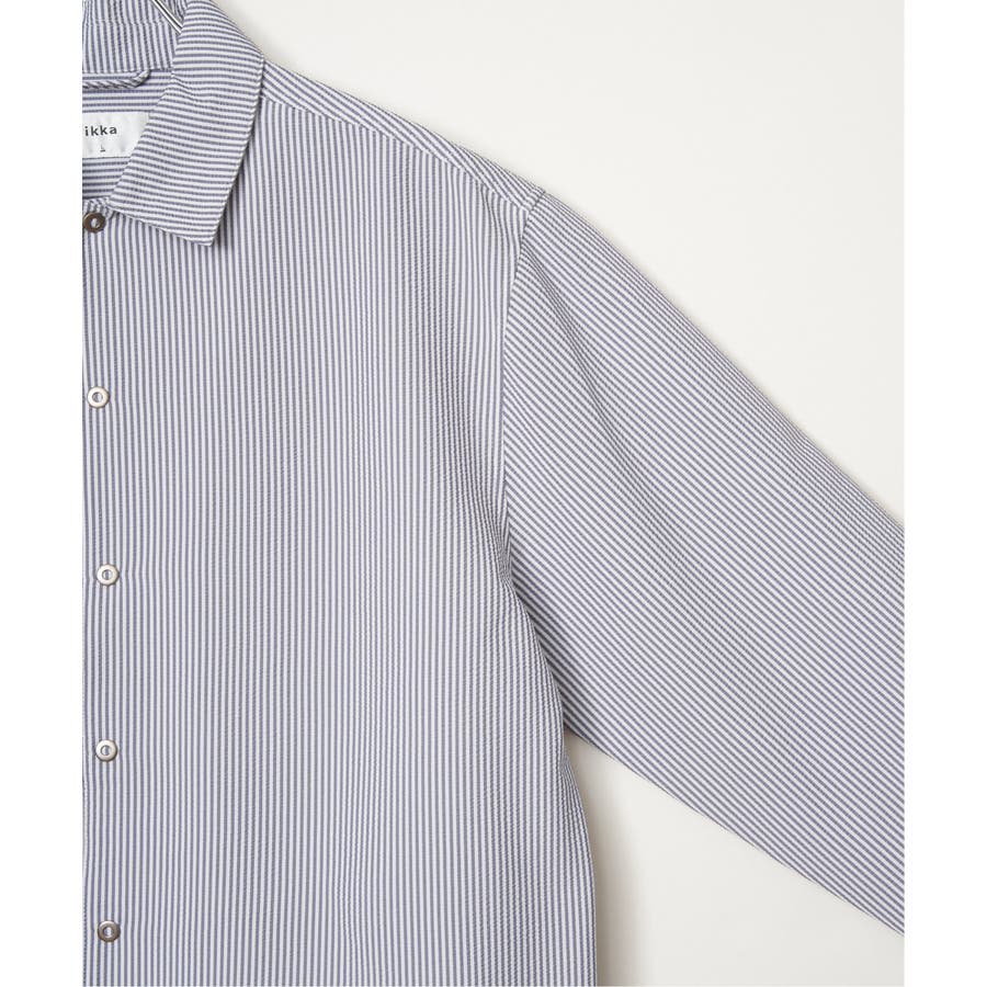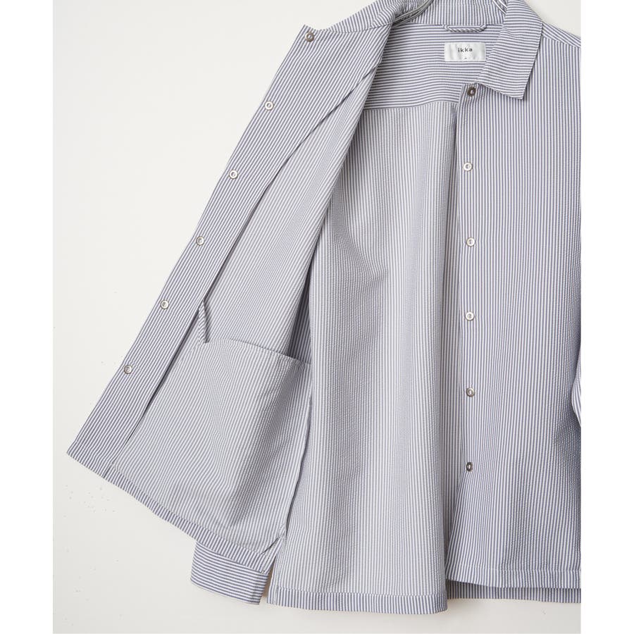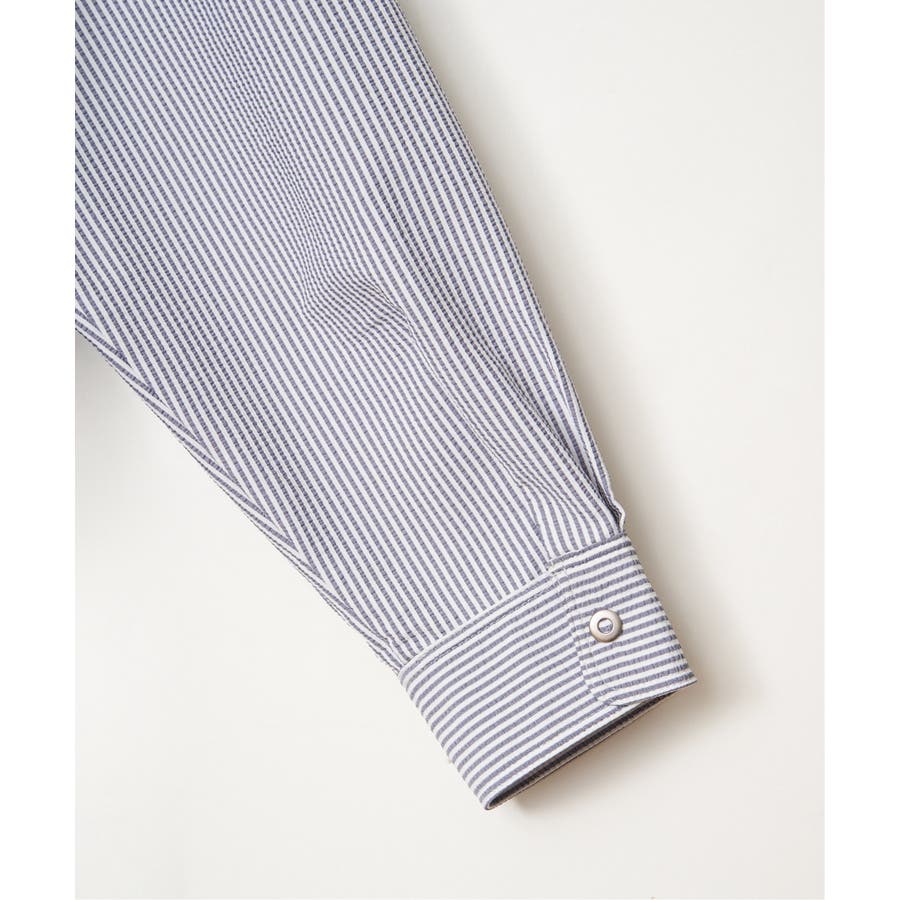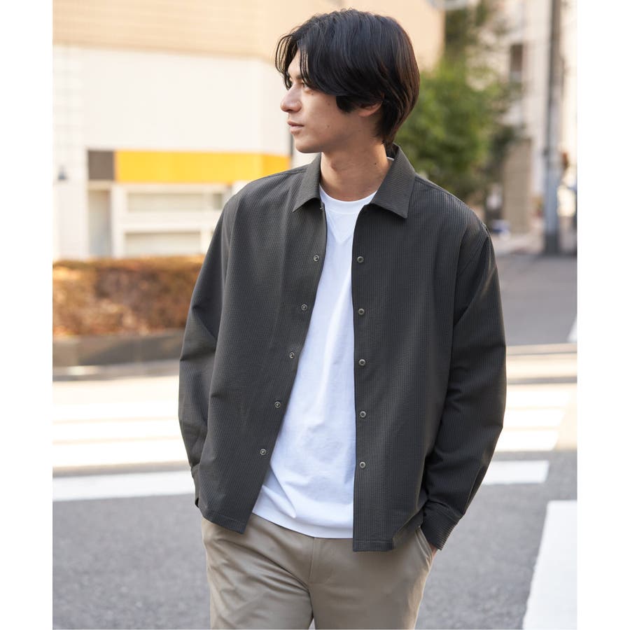 凹凸感と清涼感が特徴のポリエステルサッカー素材を使用した、イージーケア仕様のスナップシャウター。