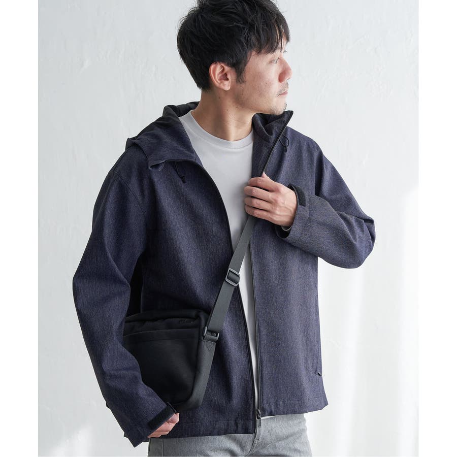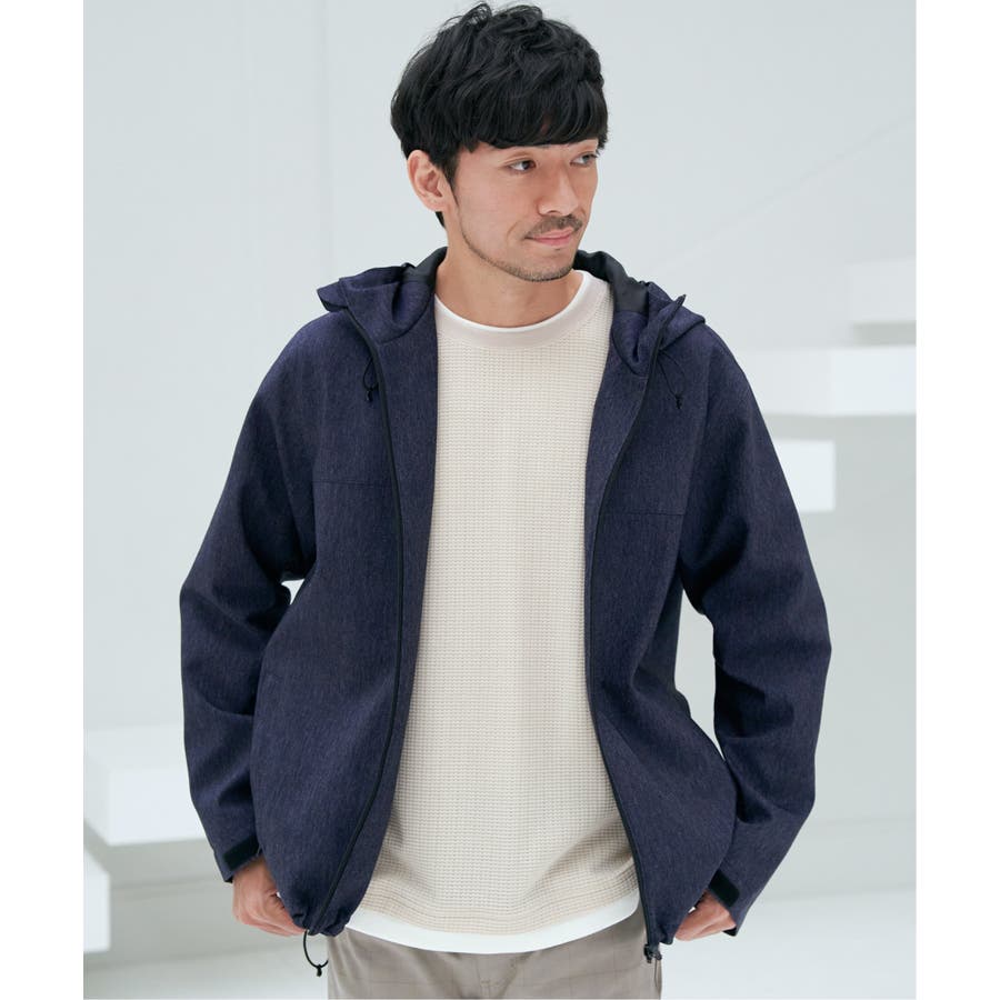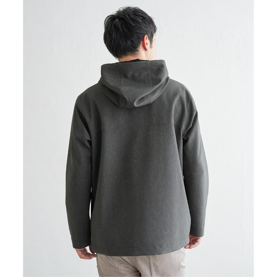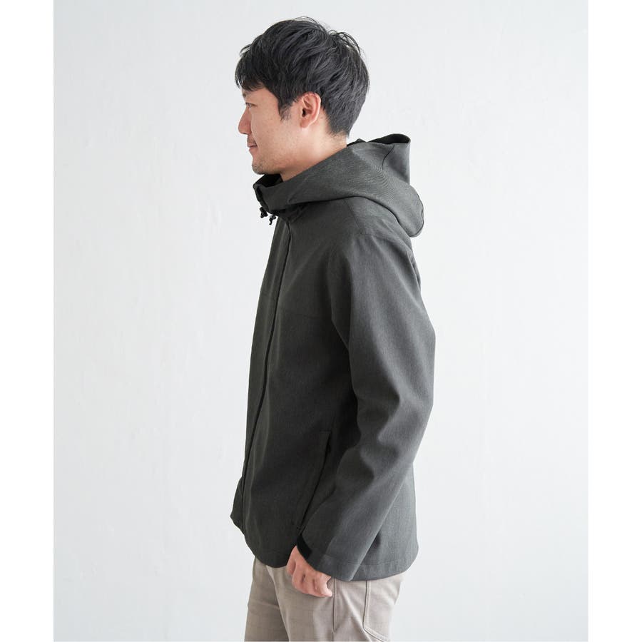 生地のメランジ感が特徴なミニマルデザインのマウンテンパーカー。