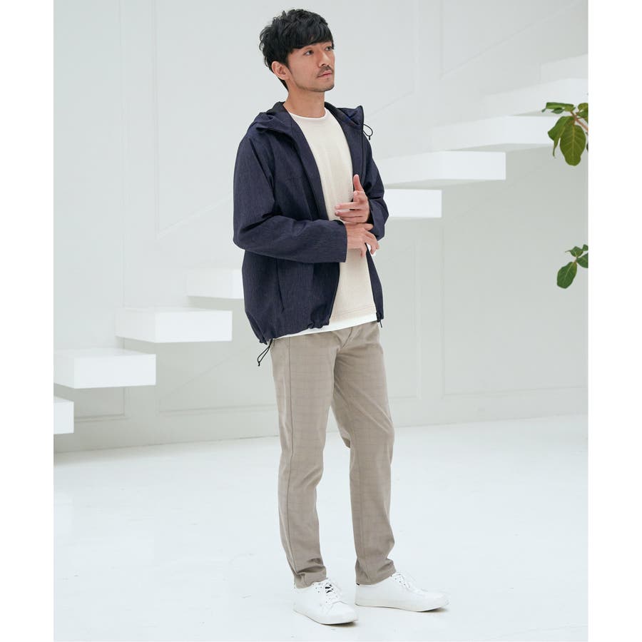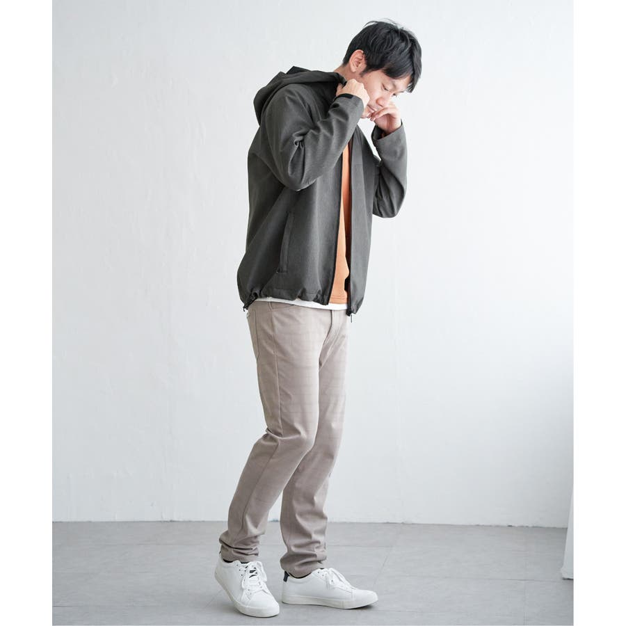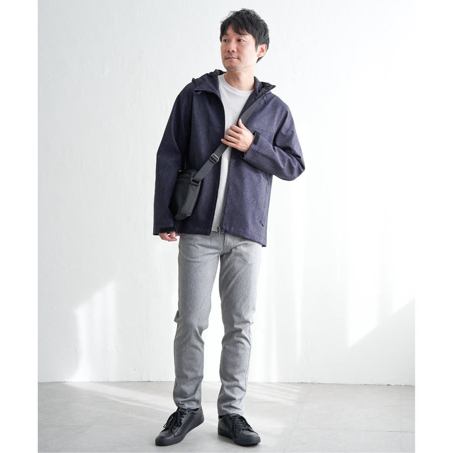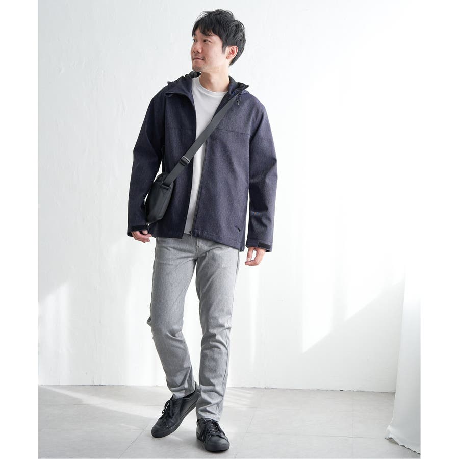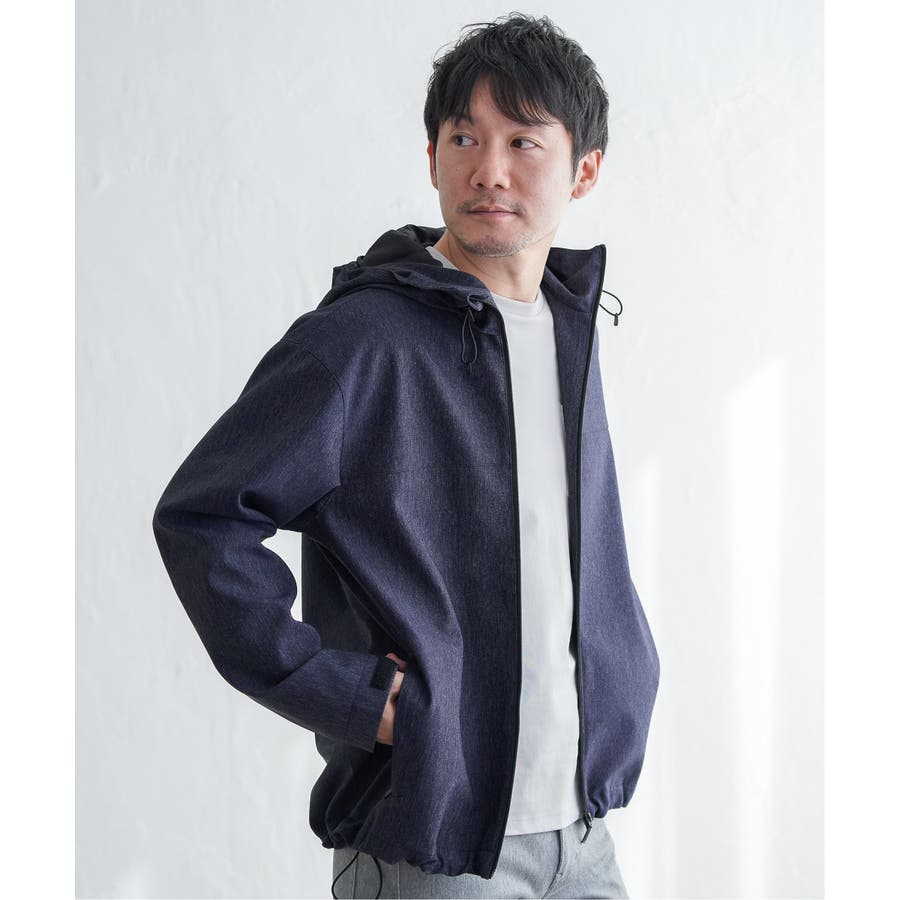 生地のメランジ感が特徴なミニマルデザインのマウンテンパーカー。
