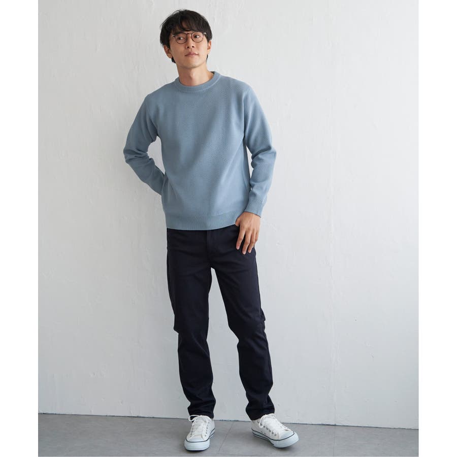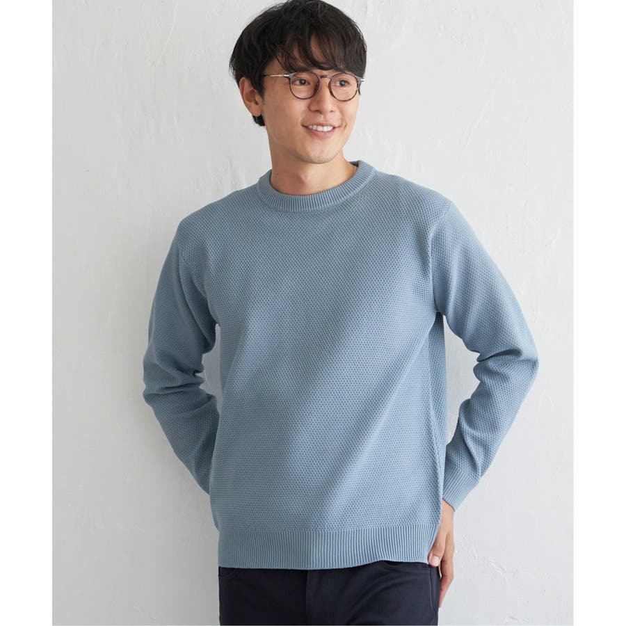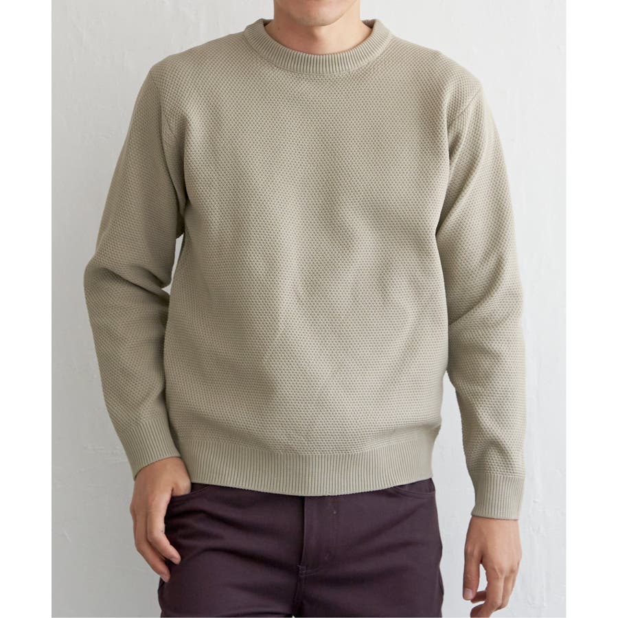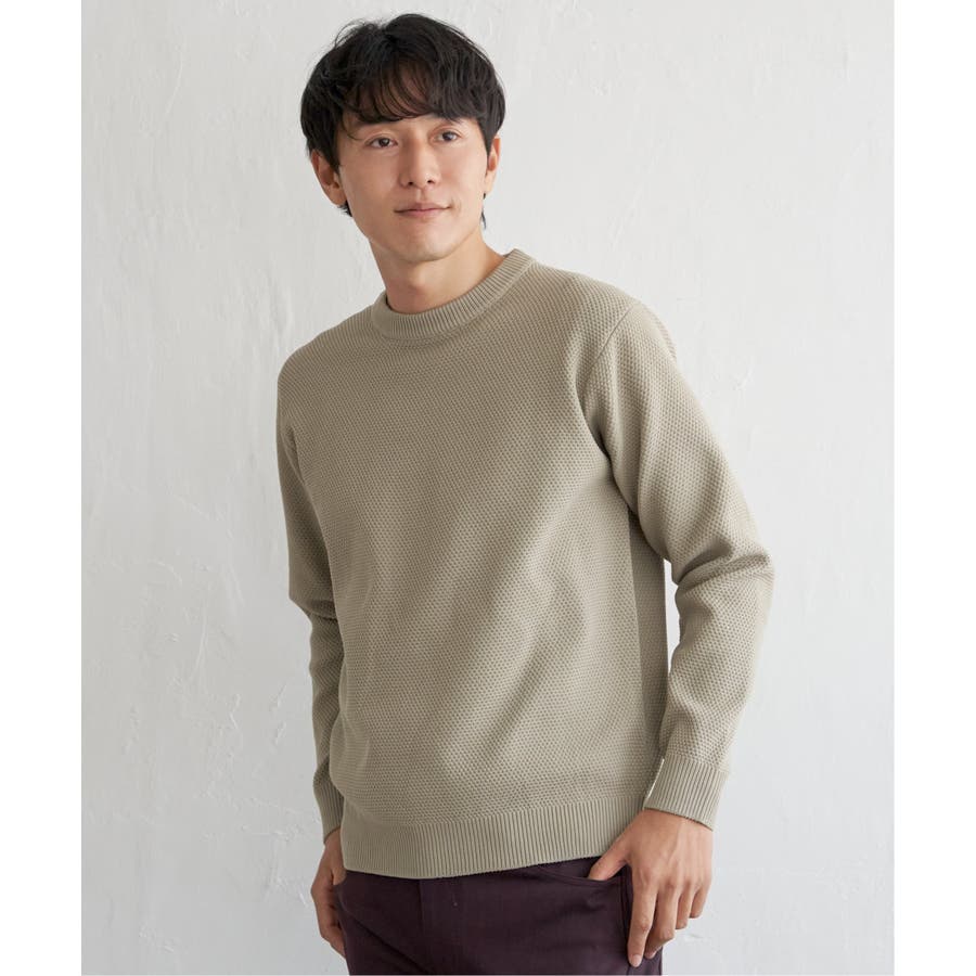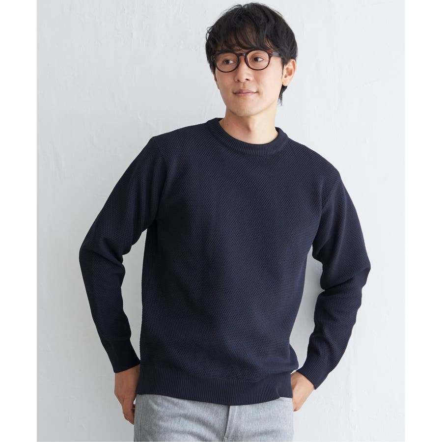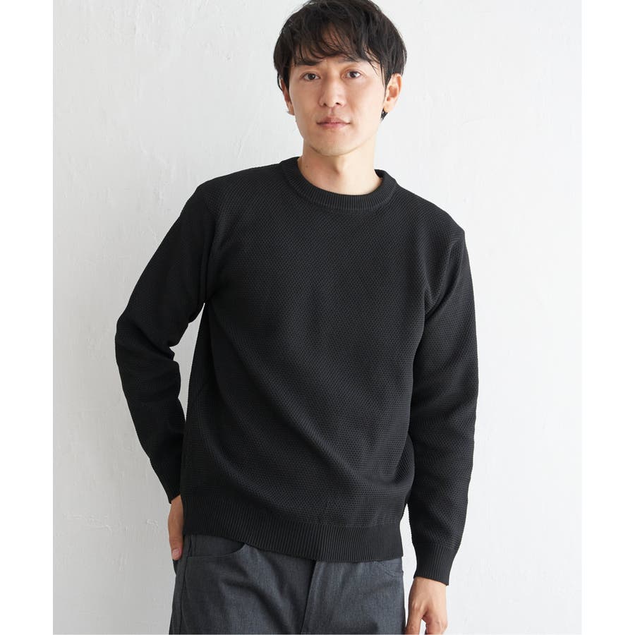 凹凸感があり、シンプルな無地ながらも表情のあるニットです。