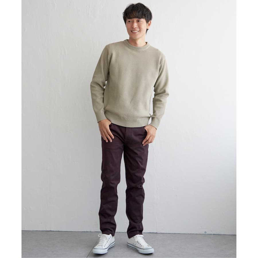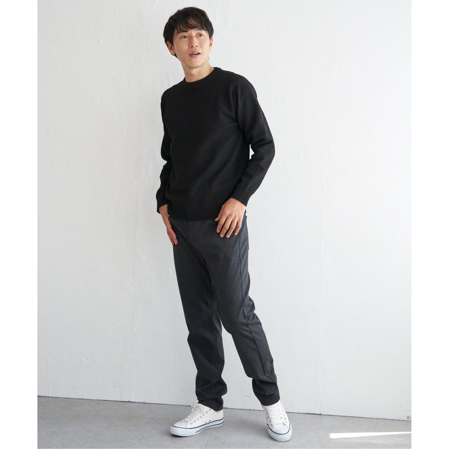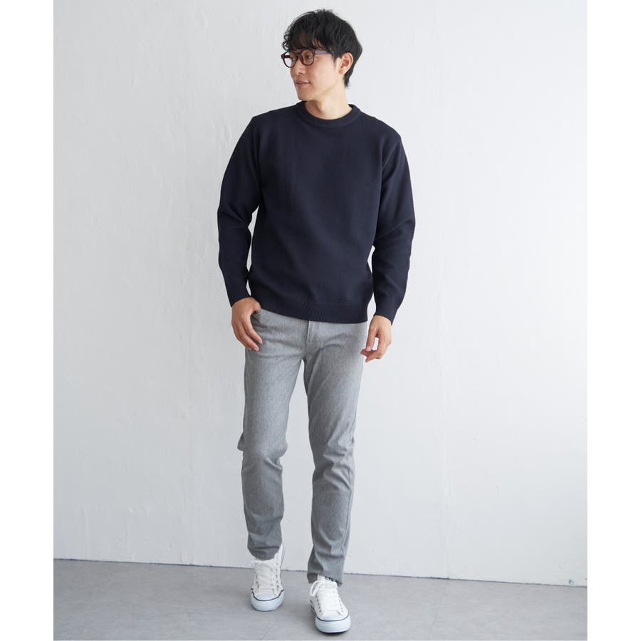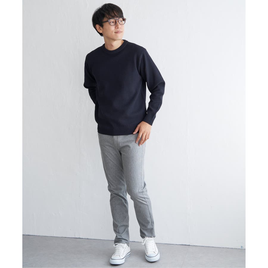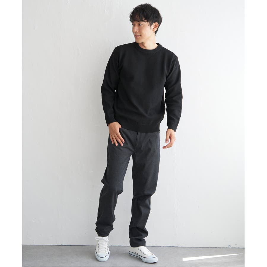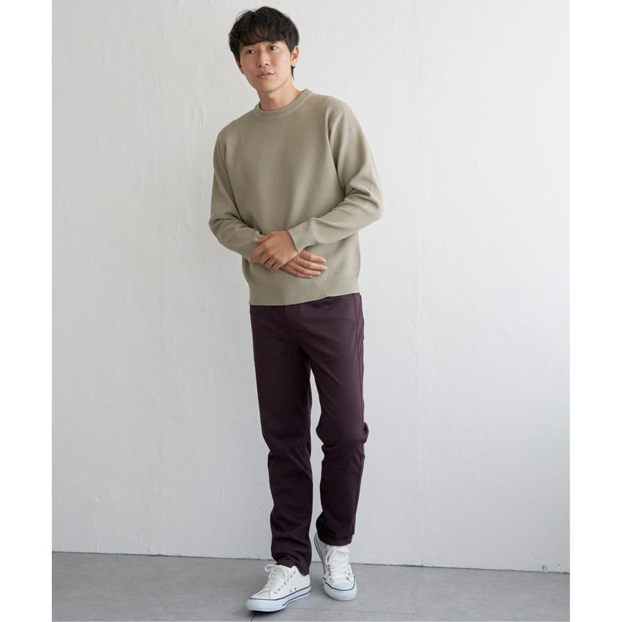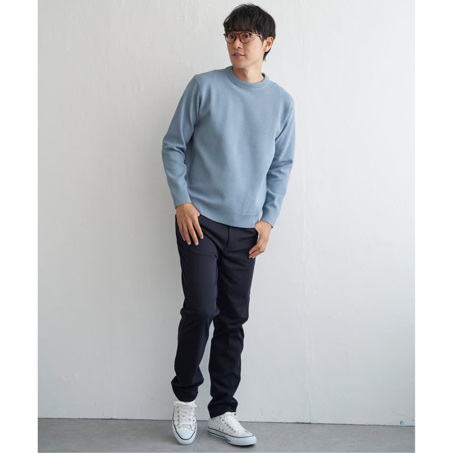 凹凸感があり、シンプルな無地ながらも表情のあるニットです。