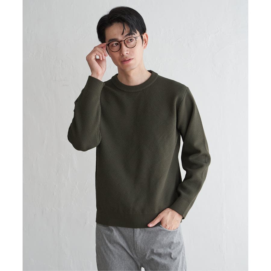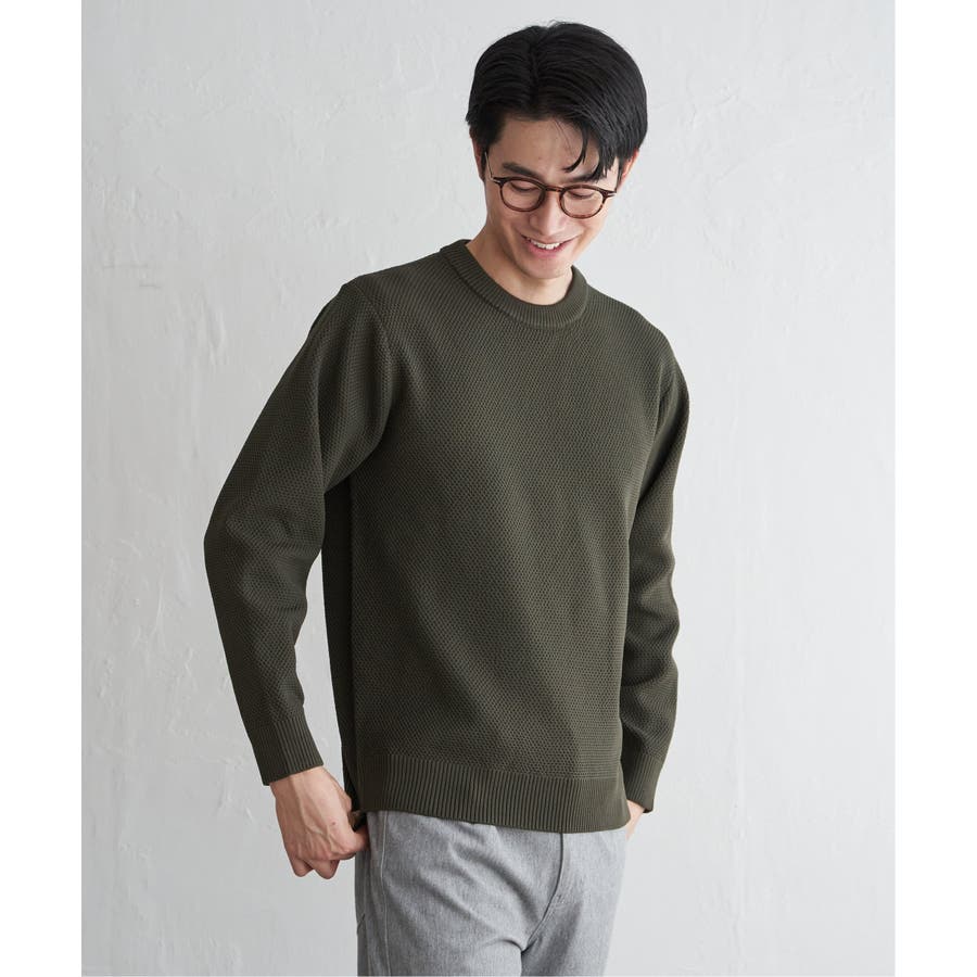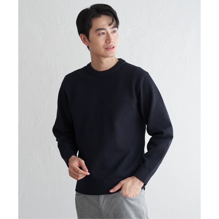 表面に凹凸のでる立体カノコ編みのクルーニット。